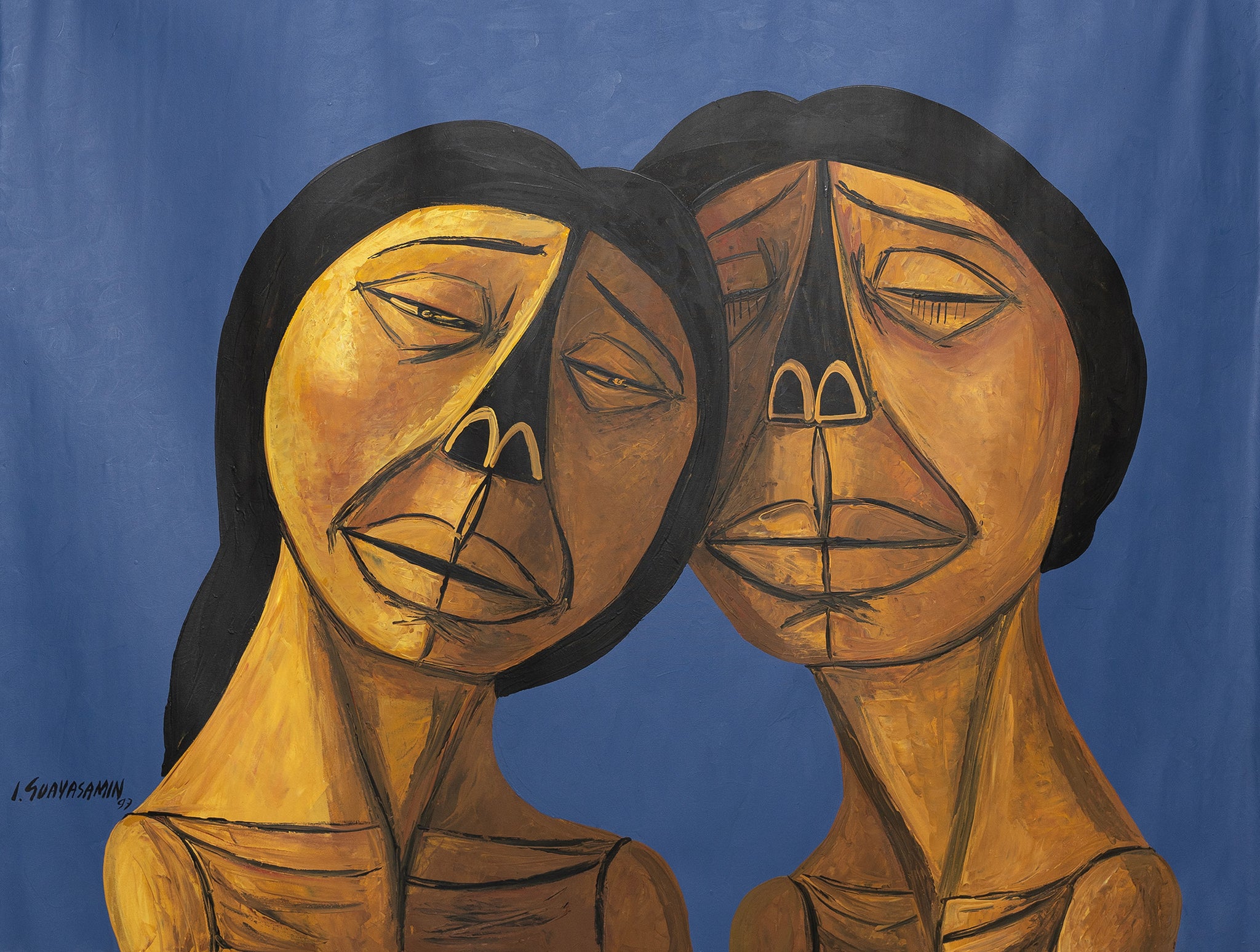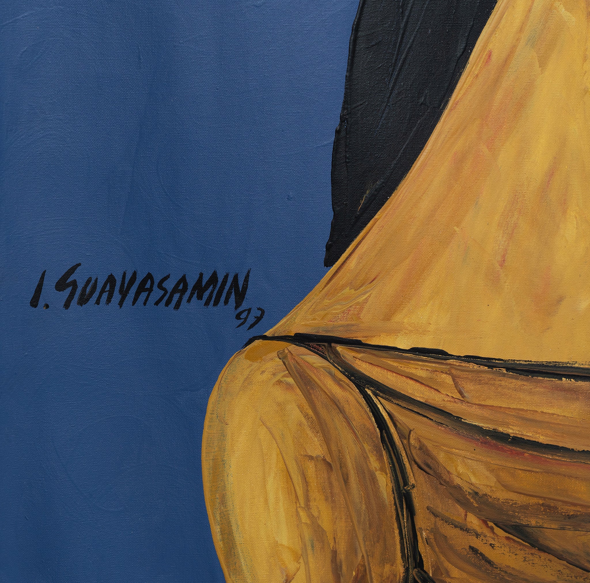 Ivan Guayasamin, Colombian - Meditacion Kowa. Year: 1998, Medium: Acrylic on Unstretched Canvas, signed, Size: 56.5 x 69 in. (143.51 x 175.26 cm)