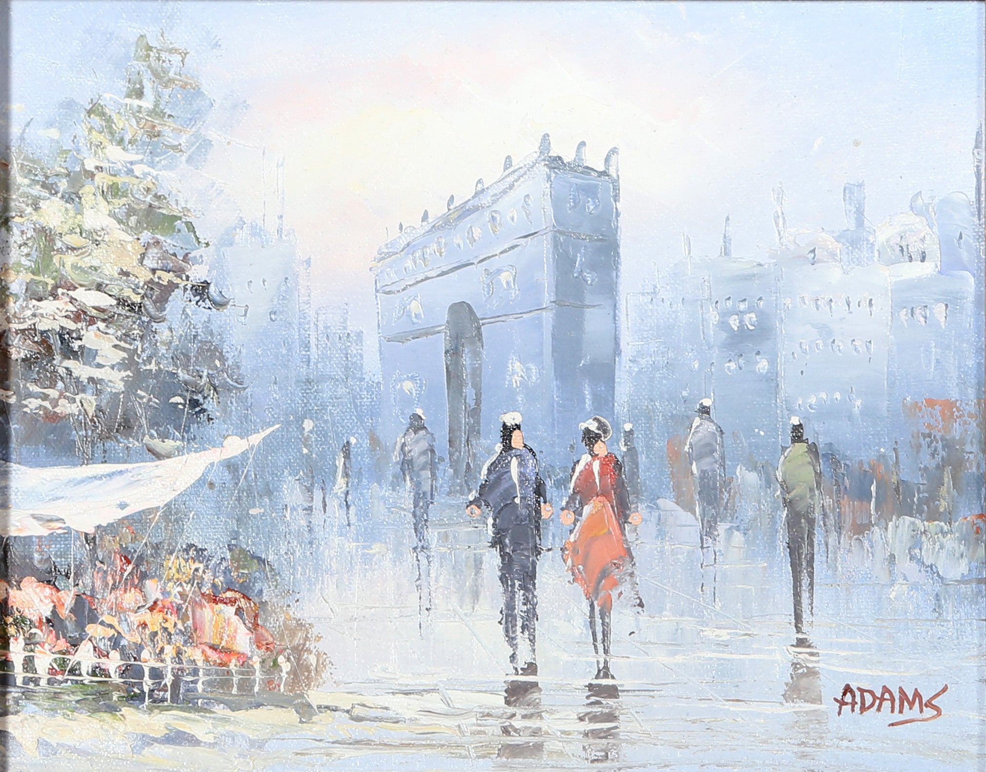 Adams - Paris Cityscape. Medium: Acrylic on Canvas, signed in acrylic, Size: 7.5 x 9.5 in. (19.05 x 24.13 cm), Frame Size: 13.75 x 15.5 inches
