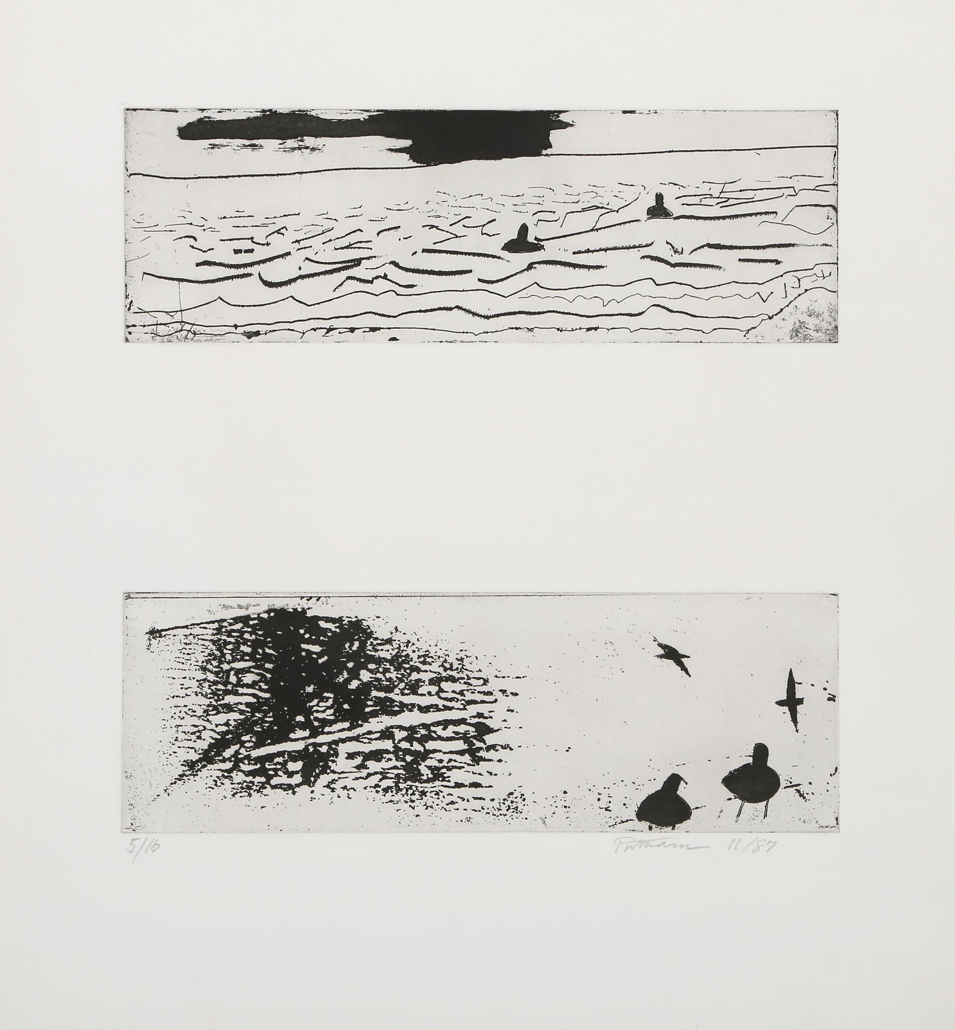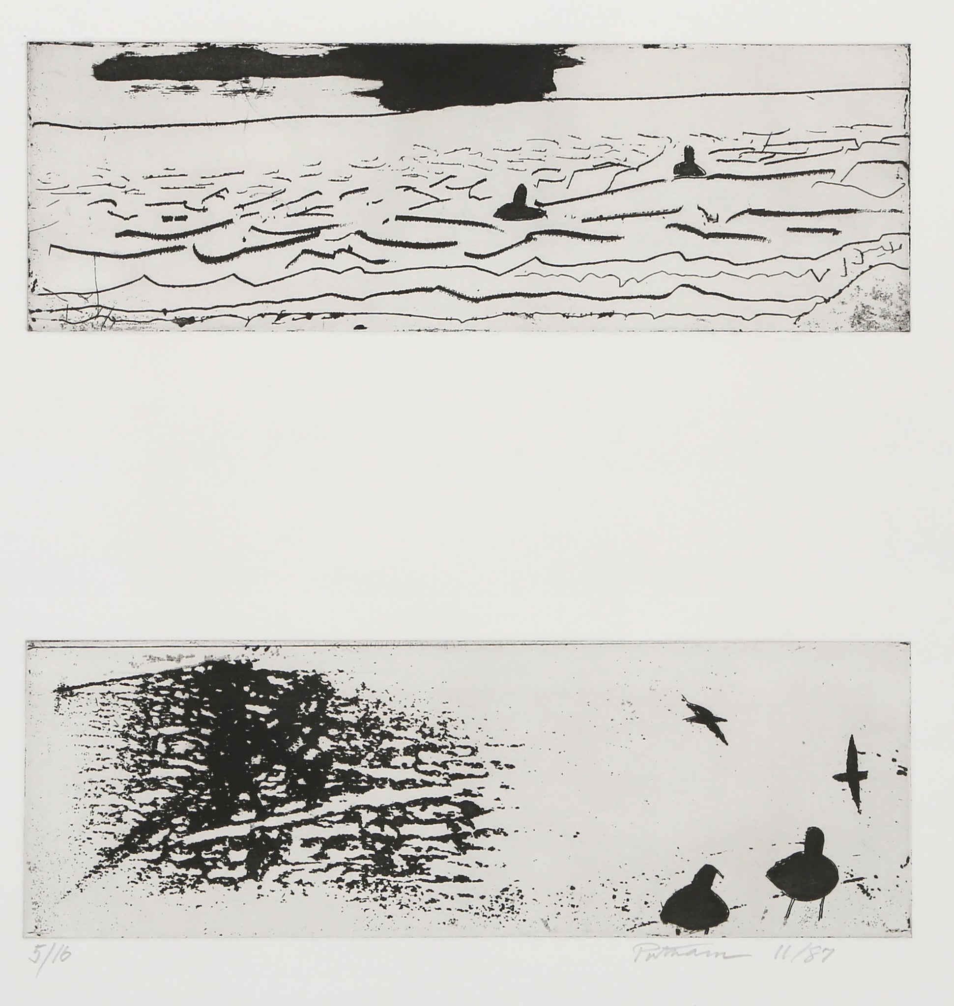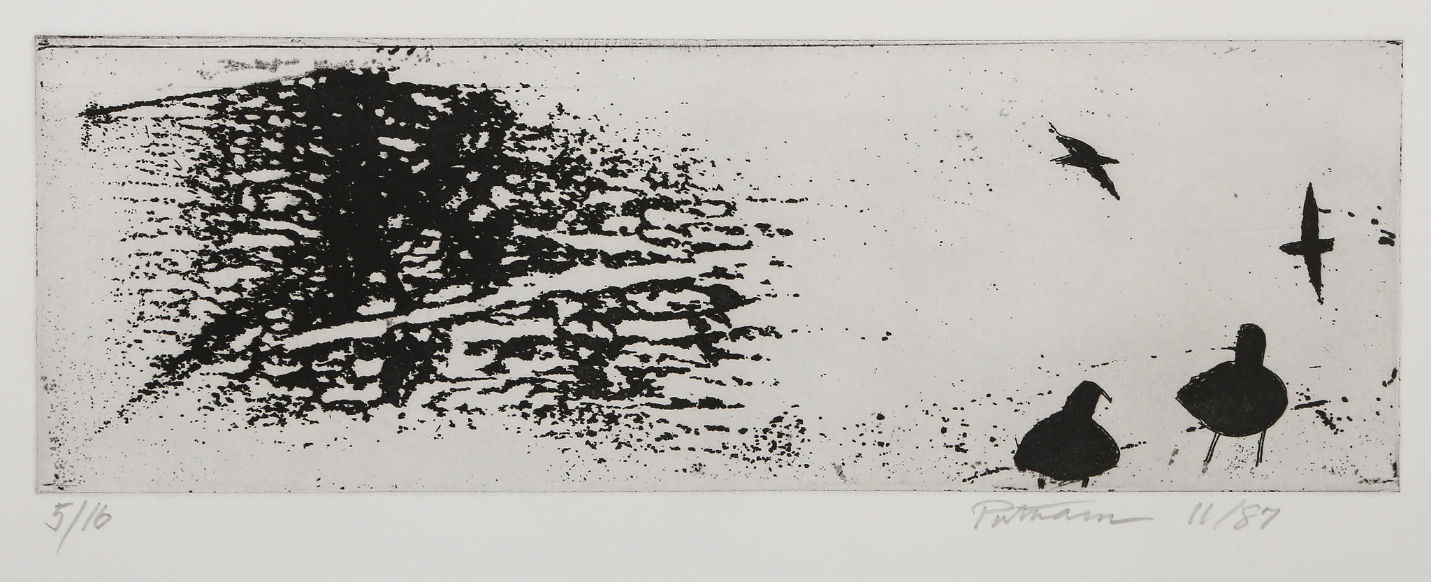 Wallace Putnam, American (1899 - 1989) - Migration. Year: circa 1987, Medium: Etching, signed, dated and numbered in pencil, Edition: 5/16, Image Size: 12 x 11.75 inches, Size: 17.25 x 16 in. (43.82 x 40.64 cm), Description: From the collection of the late Larry Saphire