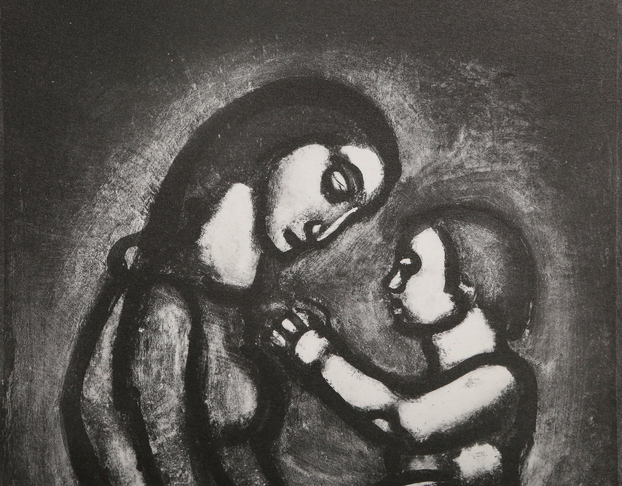 Georges Rouault, After, French (1871 - 1958) - Mother and Child, Portfolio: Twenty Four Masterpieces of Graphic Art, Year: Year Printed 1974, Medium: Collotype, Image Size: 14 x 10.5 inches, Size: 17 x 14 in. (43.18 x 35.56 cm), Printer: Triton Press, Inc, New York, Publisher: Triton Press, Inc, New York