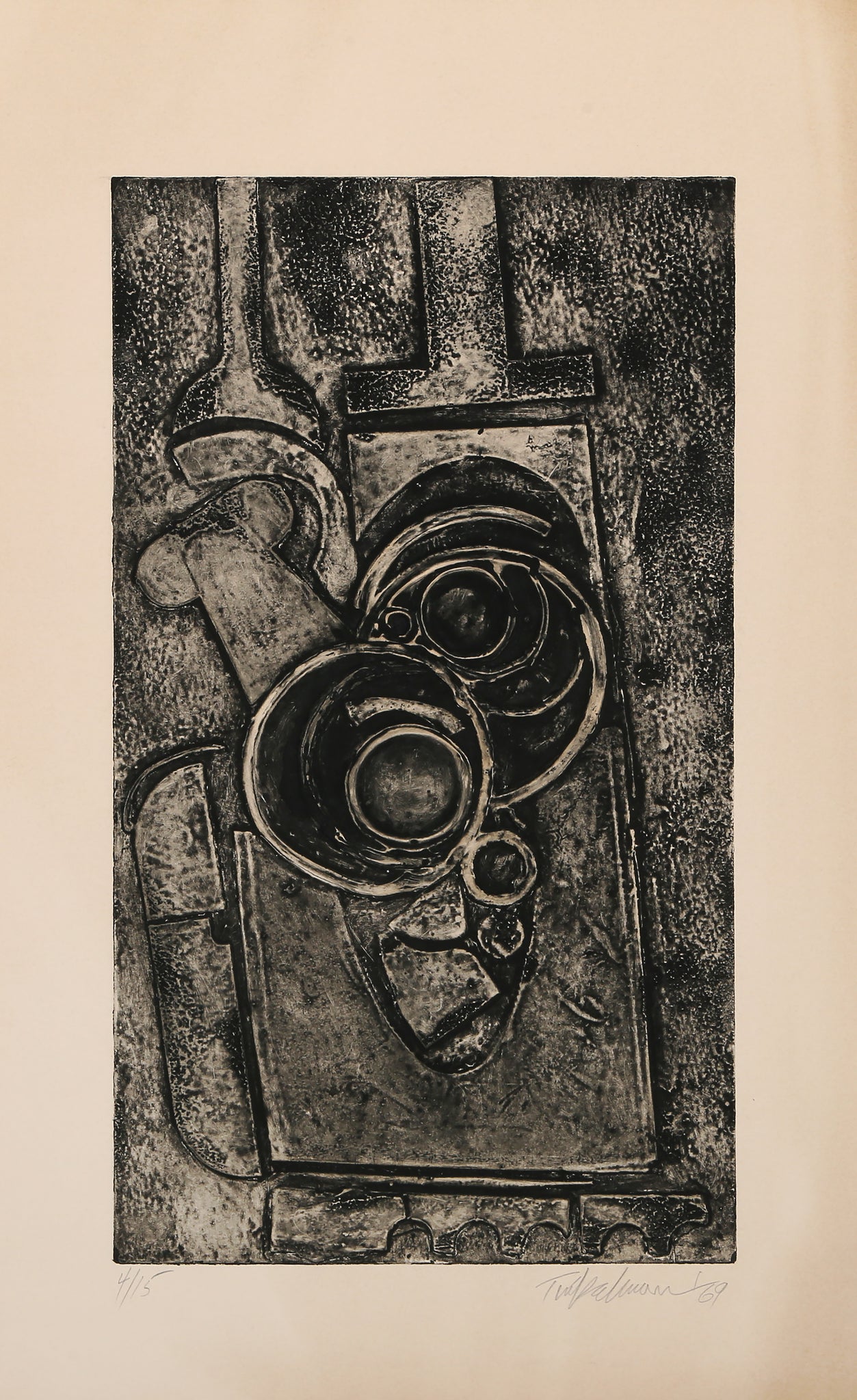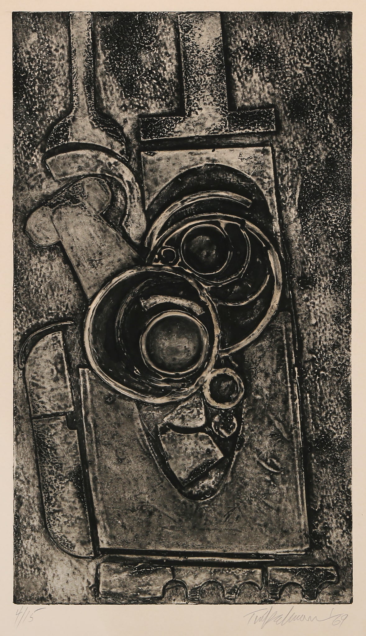 Murray Tinkelman, American (1933 - ) - Photogram. Year: 1969, Medium: Etching with embossing, signed, dated and numbered in pencil, Edition: 15, Image Size: 14 x 8 inches, Size: 17.5 x 11.25 in. (44.45 x 28.58 cm), Description: From the collection of the late Larry Saphire
