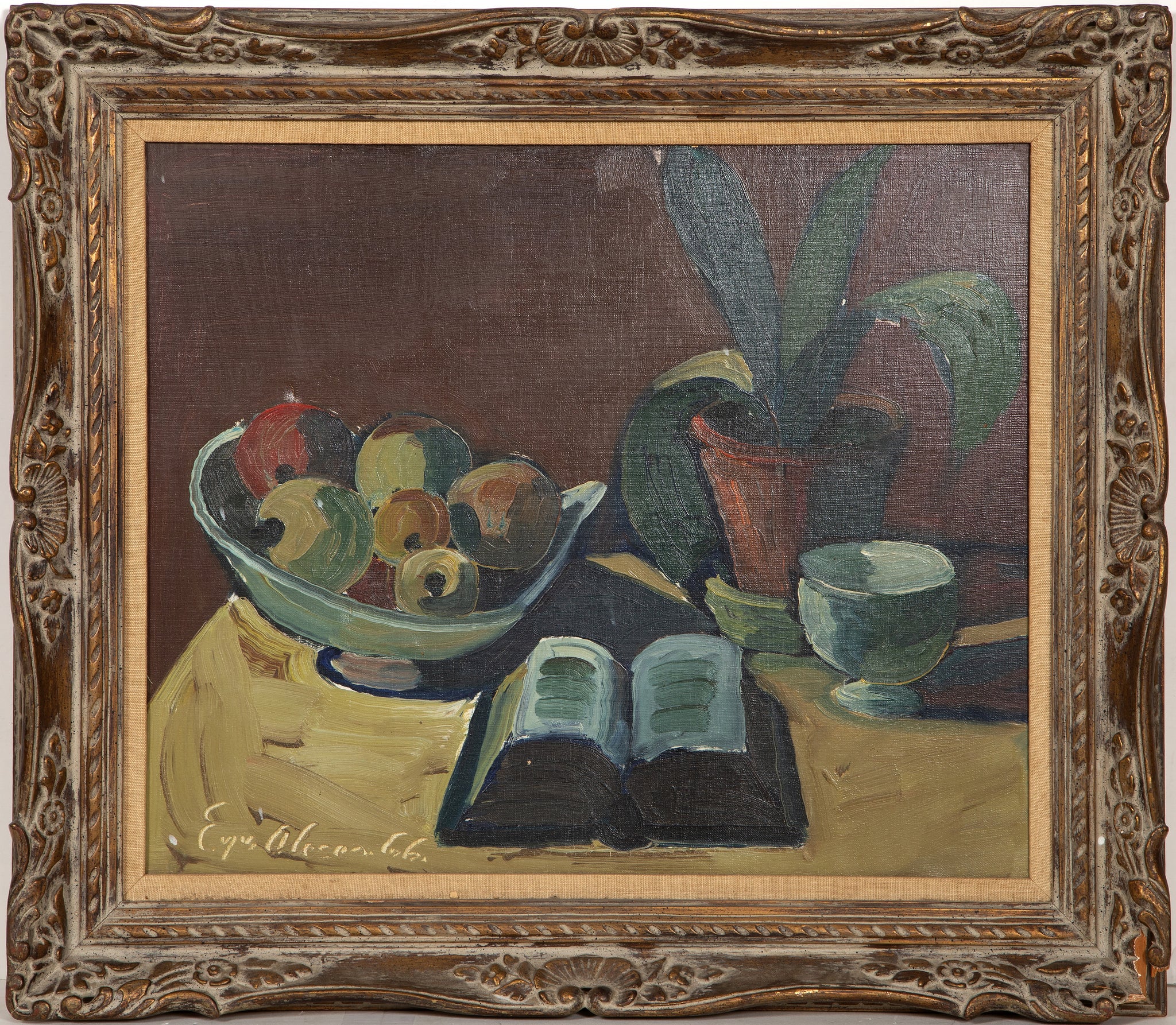 Unknown Artist - Still Life With Book. Year: 1966, Medium: Oil on Canvas, signed and dated lower left, Size: 19.5 x 23.75 in. (49.53 x 60.33 cm), Frame Size: 26.5 x 30.5 inches