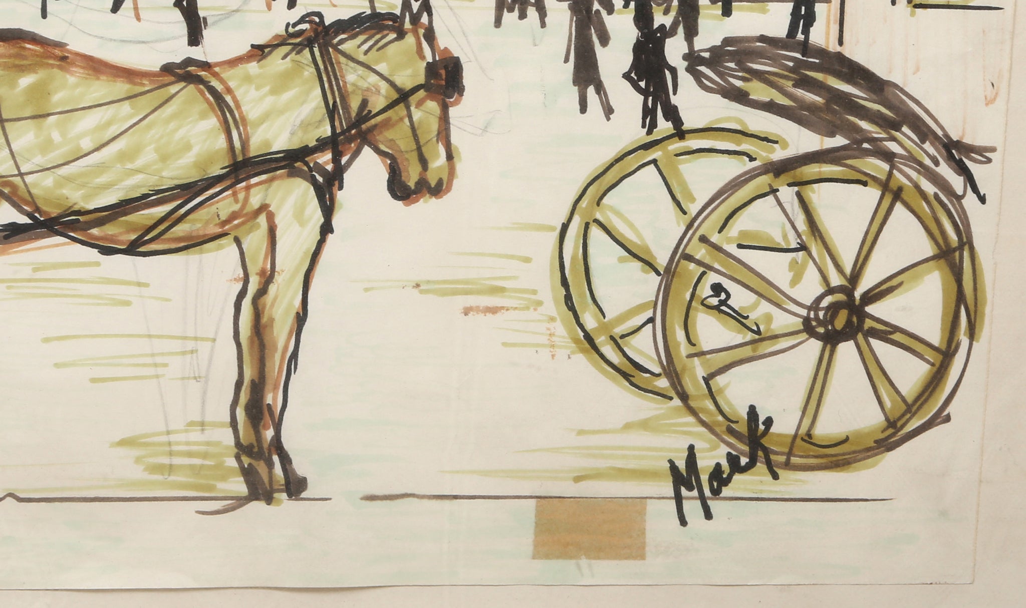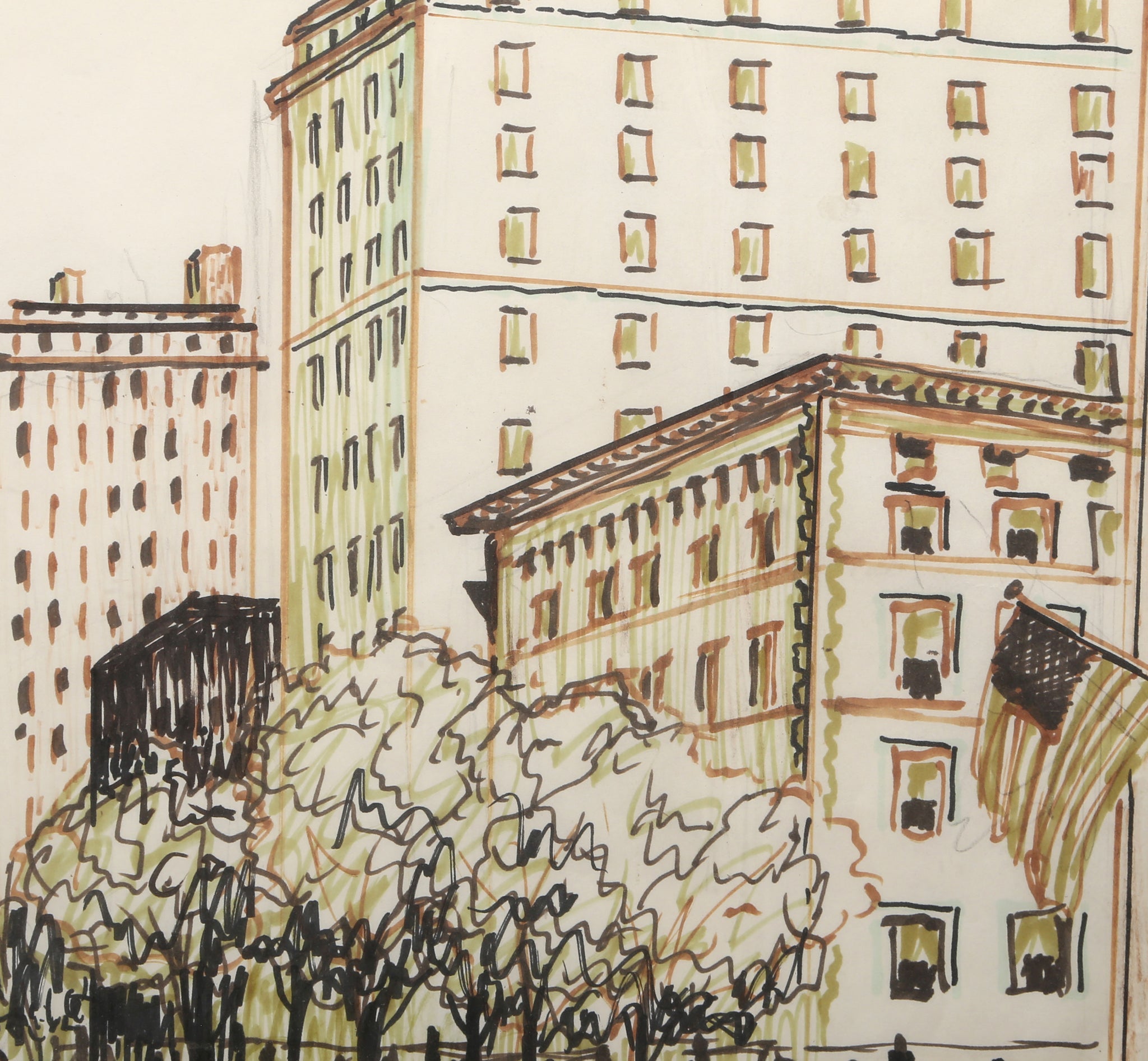 Mack - Central Park. Medium: Color Marker Drawing, signed lower right, Size: 17.75 x 23.75 in. (45.09 x 60.33 cm), Frame Size: 25 x 31 inches