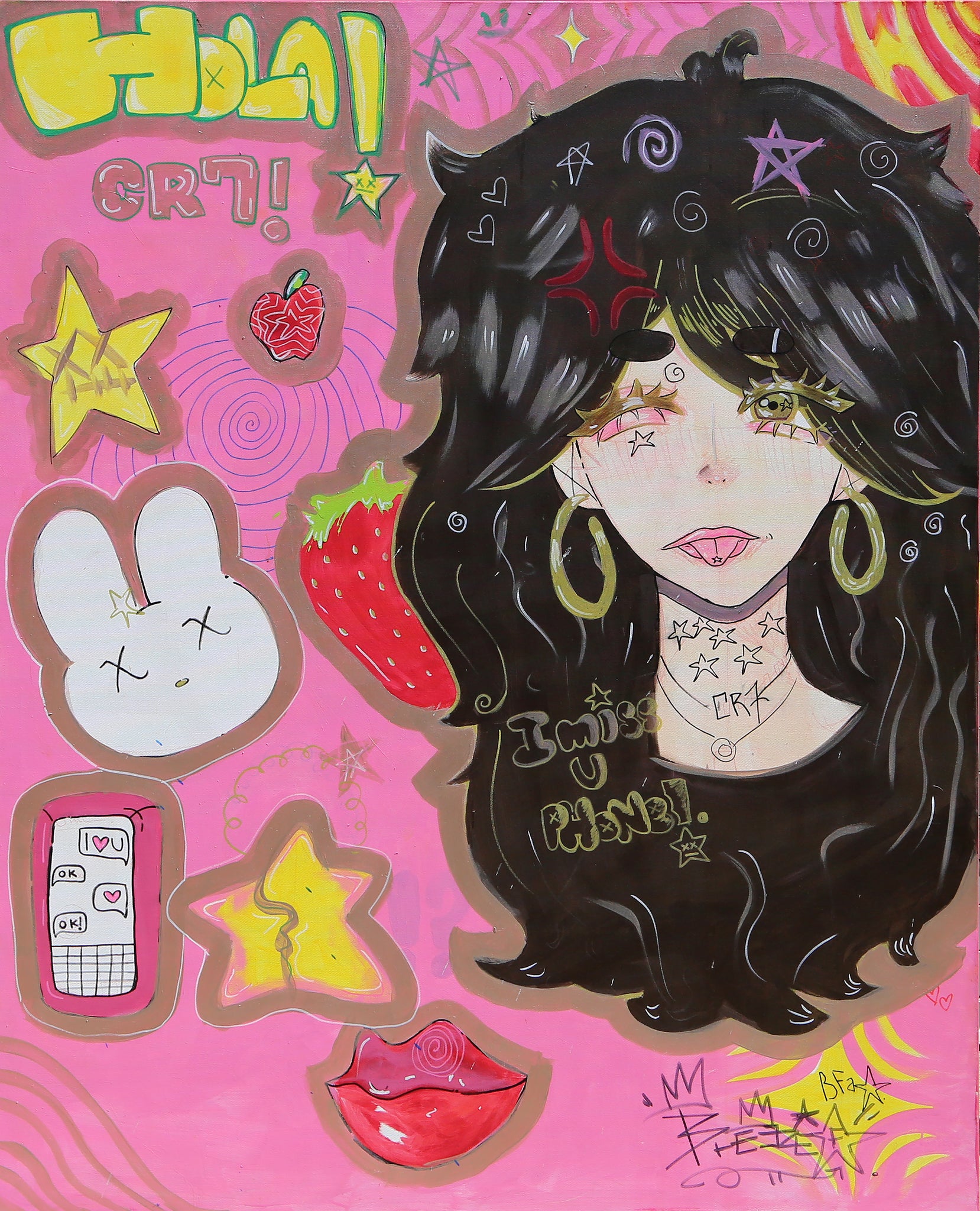 Breeze Furnari, Italian (2009 - ) - Daydreams. Year: 2024, Medium: Acrylic and Oil on Canvas, signed lower right, Size: 60 x 48 in. (152.4 x 121.92 cm)