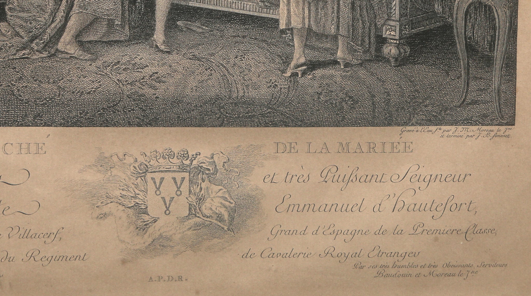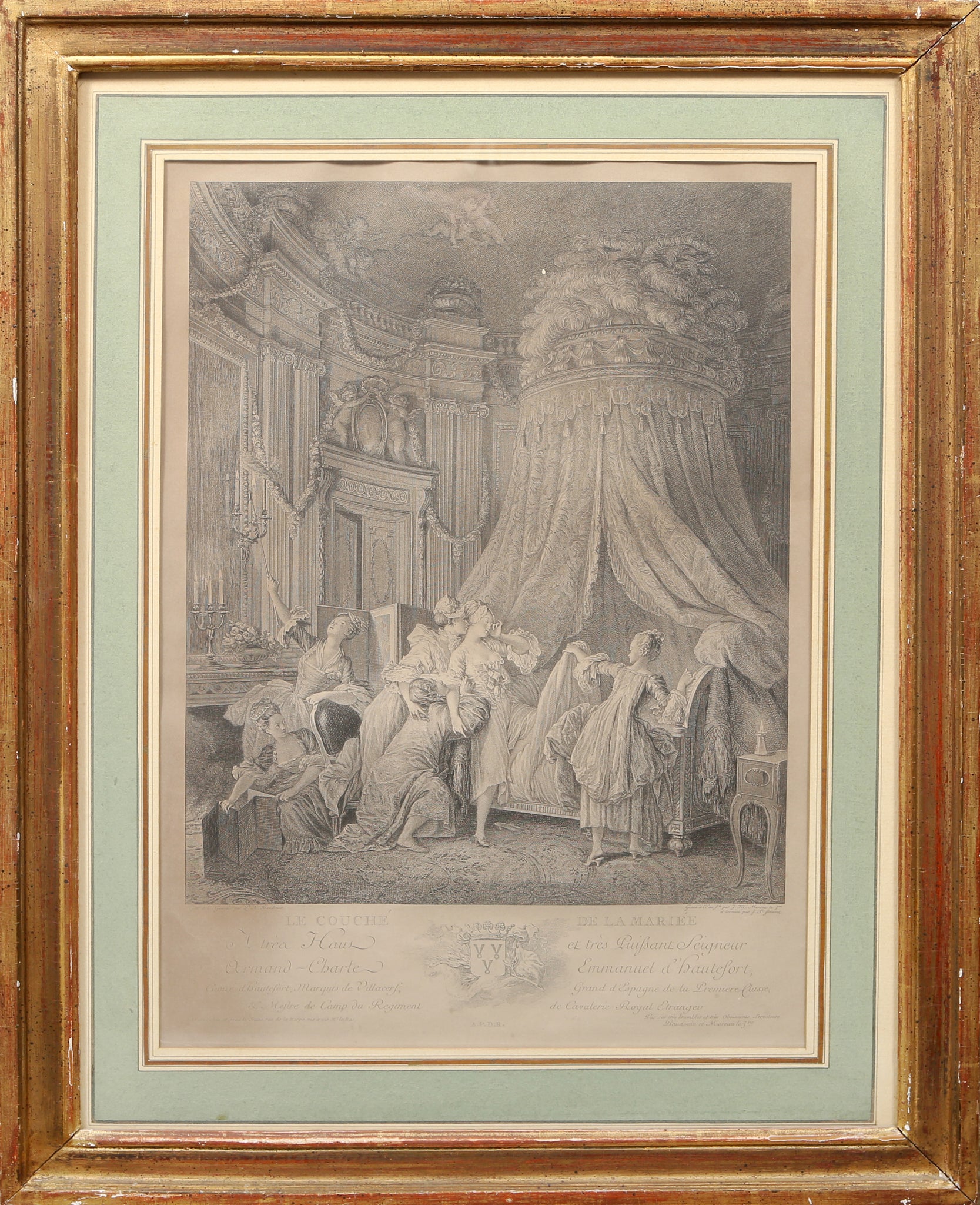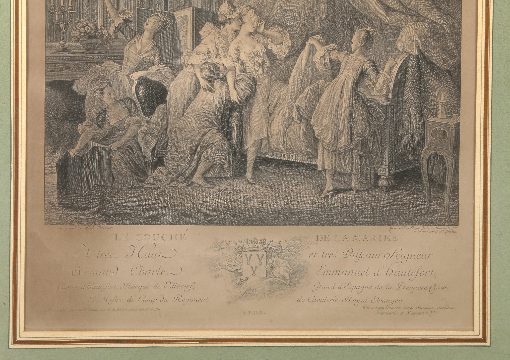 Jean Michel Moreau (1741 - 1814) - La Couche. Medium: Engraving, Image Size: 15 x 12 inches, Frame Size: 25.25 x 19.5 inches