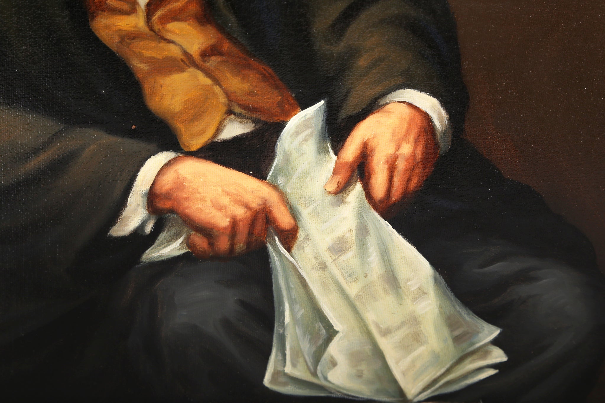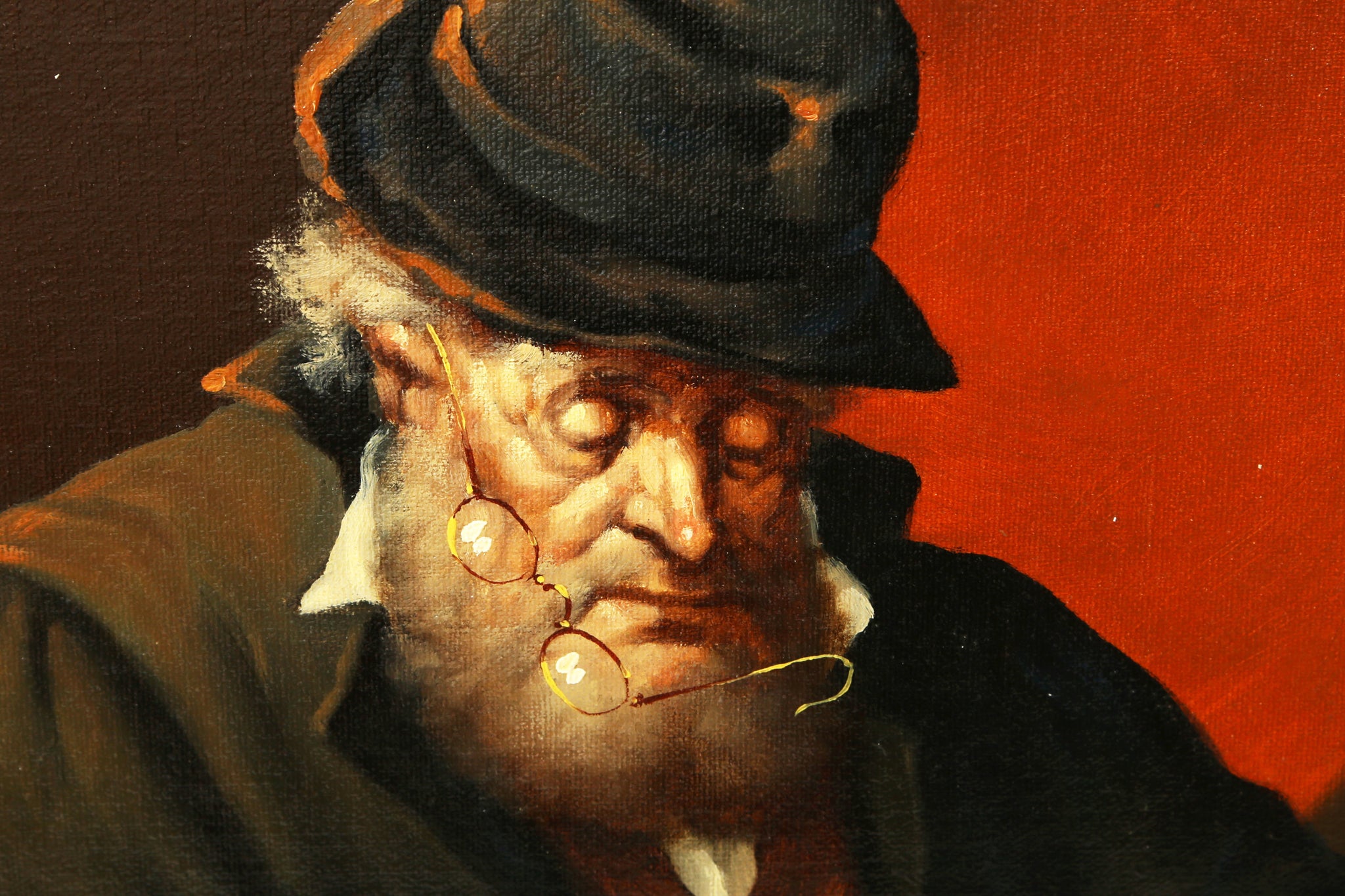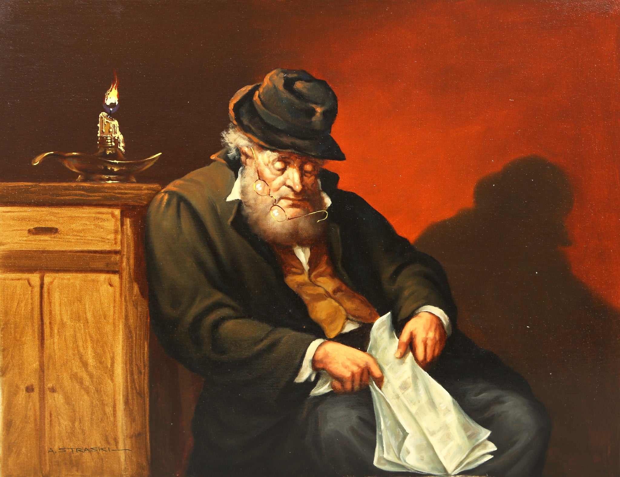 Abraham Straski, Polish (1903 - 1987) - Slumped Man. Year: circa 1960, Medium: Oil on canvas, signed, Size: 20 x 24 in. (50.8 x 60.96 cm)