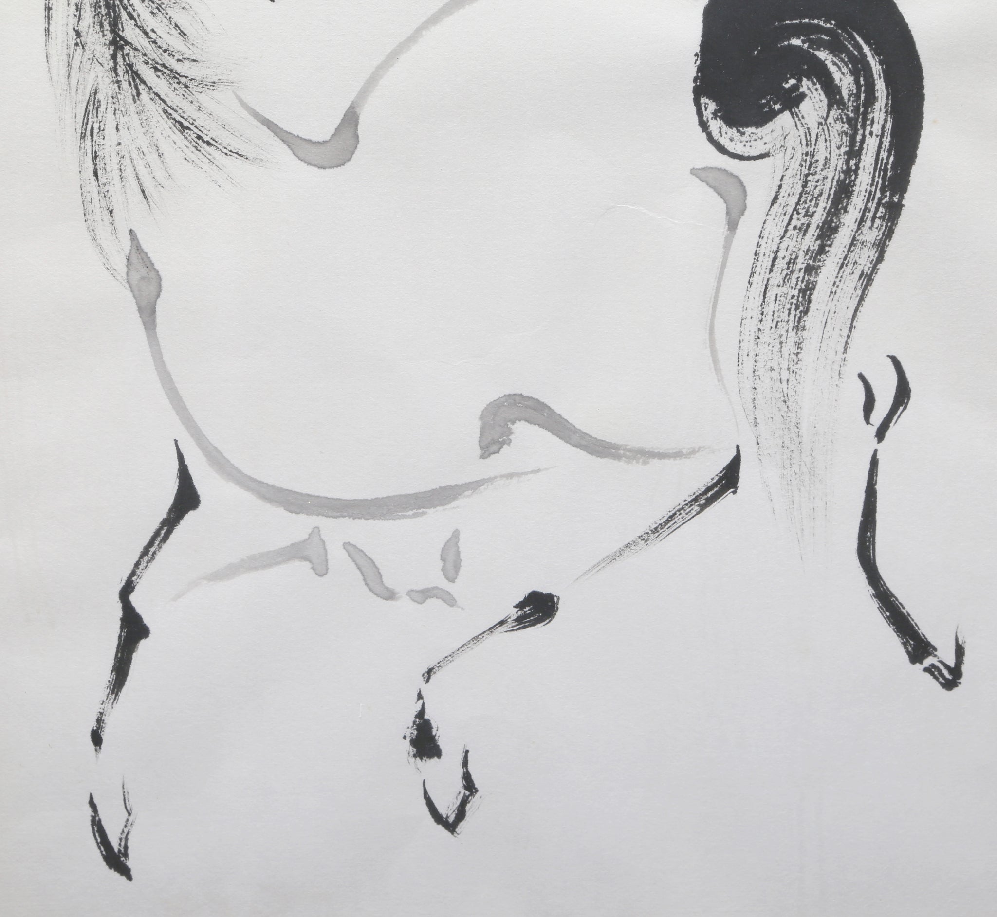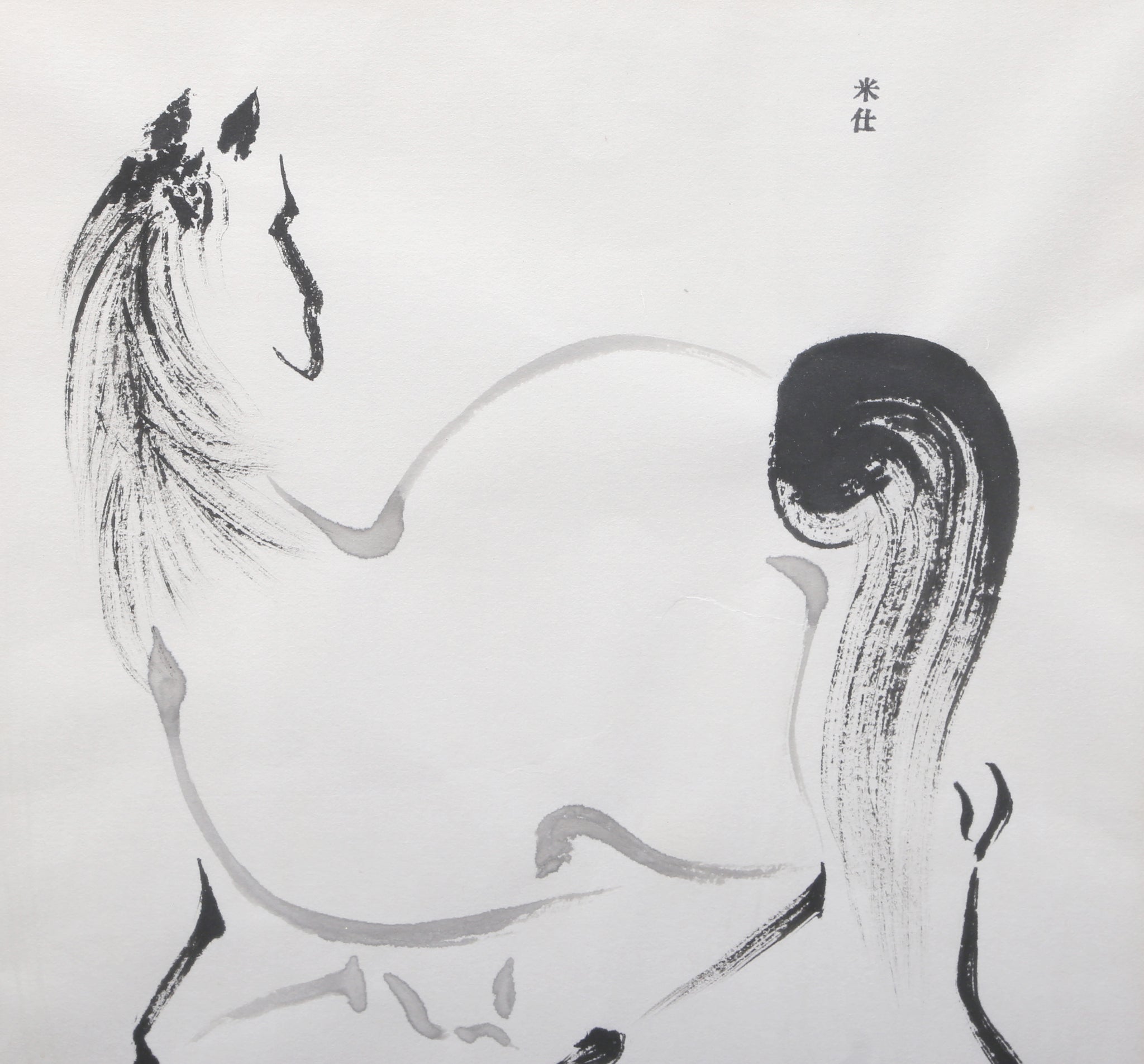 In the Style of Tsurusawa Tansaku, Japanese (1729 - 1797) - Stallion. Medium: Brush drawing, signed top right, Size: 16 x 13 in. (40.64 x 33.02 cm), Frame Size: 24 x 19.75 inches