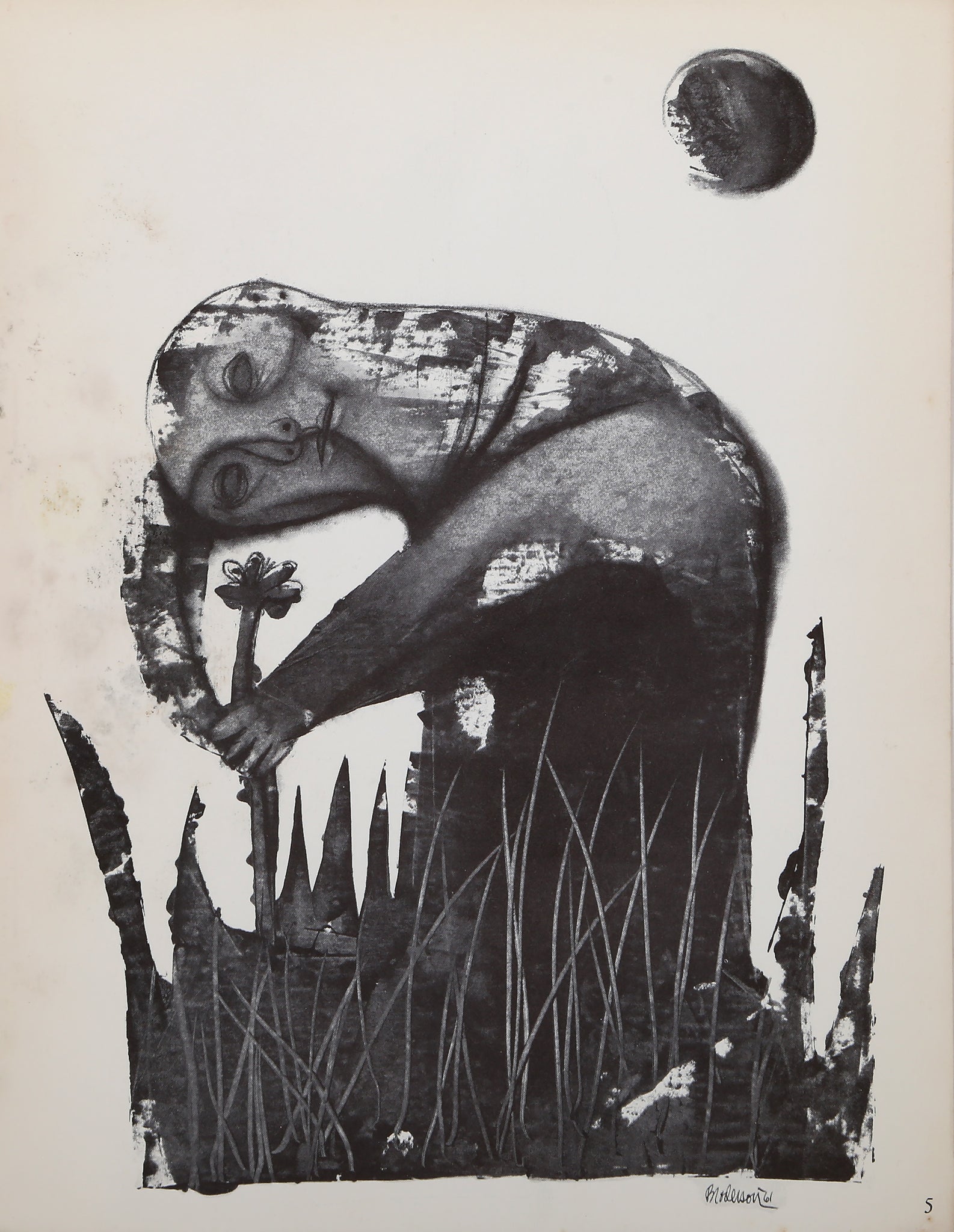 Morris Broderson, American (1928 - 2011) - Sound of Flowers VII. Portfolio: The Atelier Portfolios, Number One: Morris Broderson, Year: 1961, Medium: Lithograph, signed and dated in the plate lower left, Image Size: 11.75 x 8.5 inches, Size: 12.75 x 9.75 in. (32.39 x 24.77 cm), Printer: The Nutshell Press, South Pasadena, California