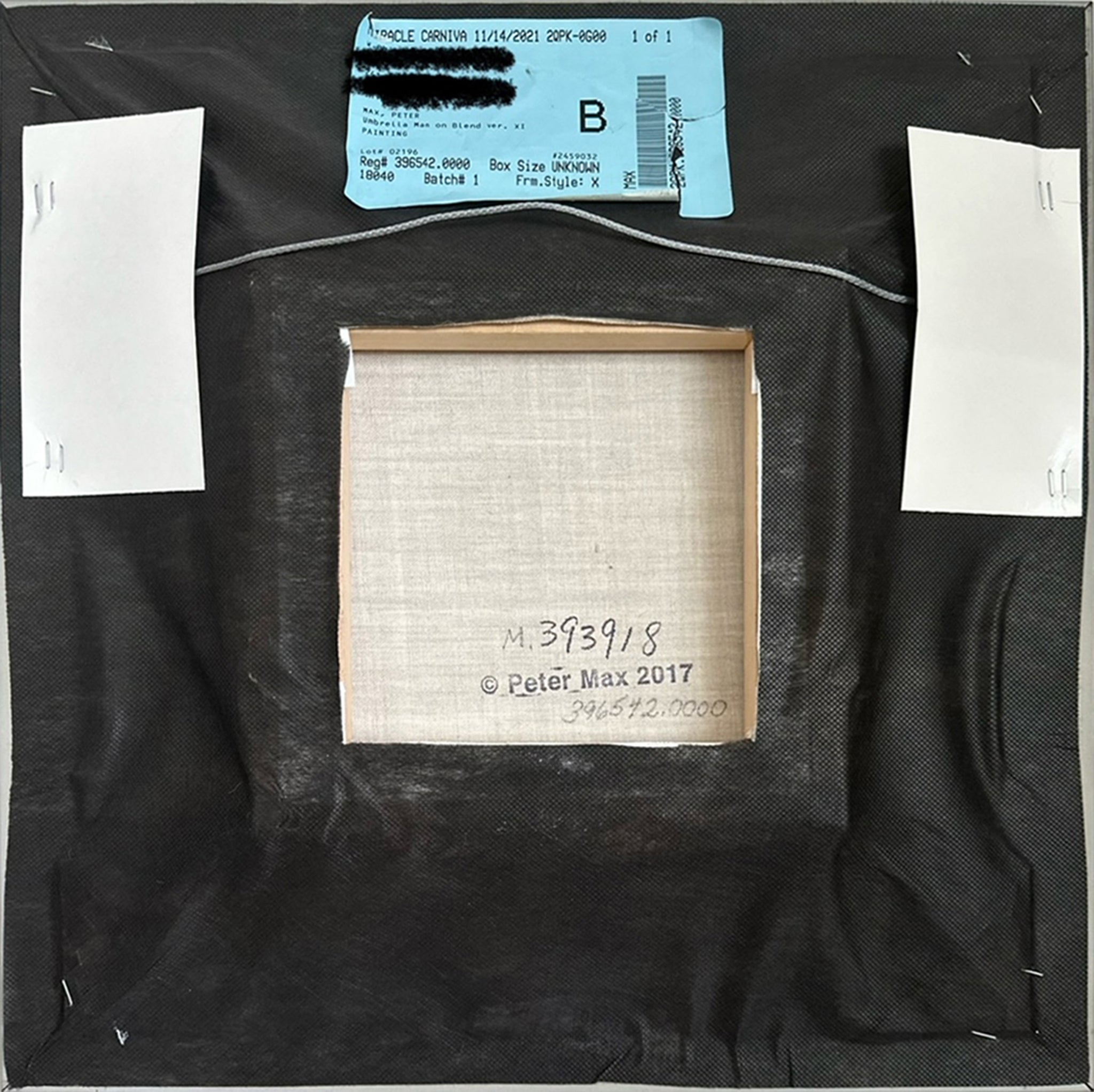Peter Max, German/American (1937 - ) - Umbrella Man. Year: 2017, Medium: Acrylic on Canvas, signed, Size: 10 x 10 in. (25.4 x 25.4 cm), Frame Size: 19 x 19 inches