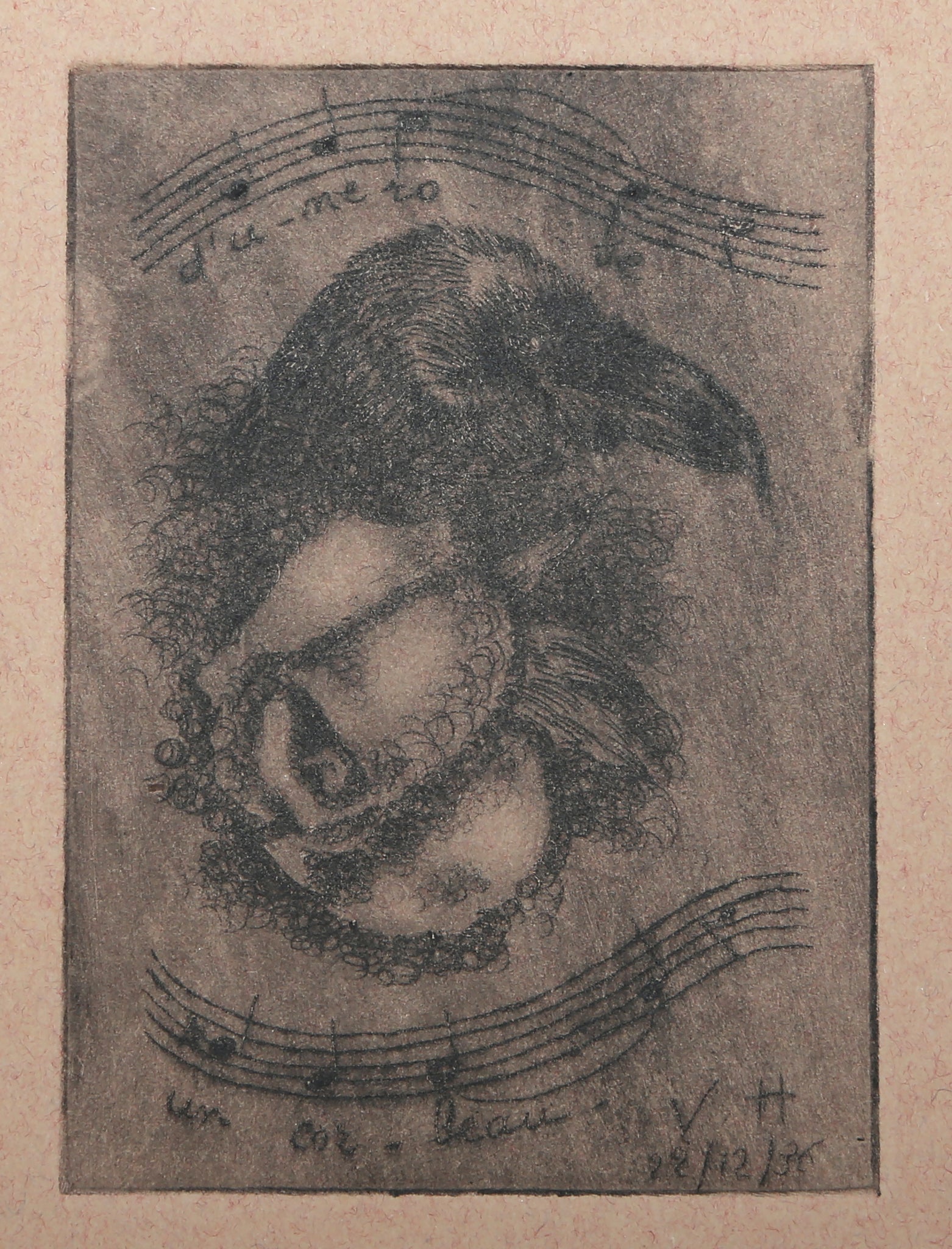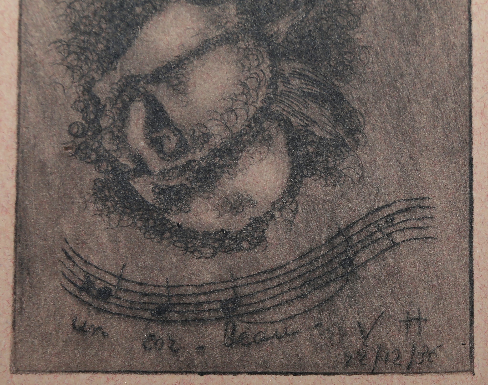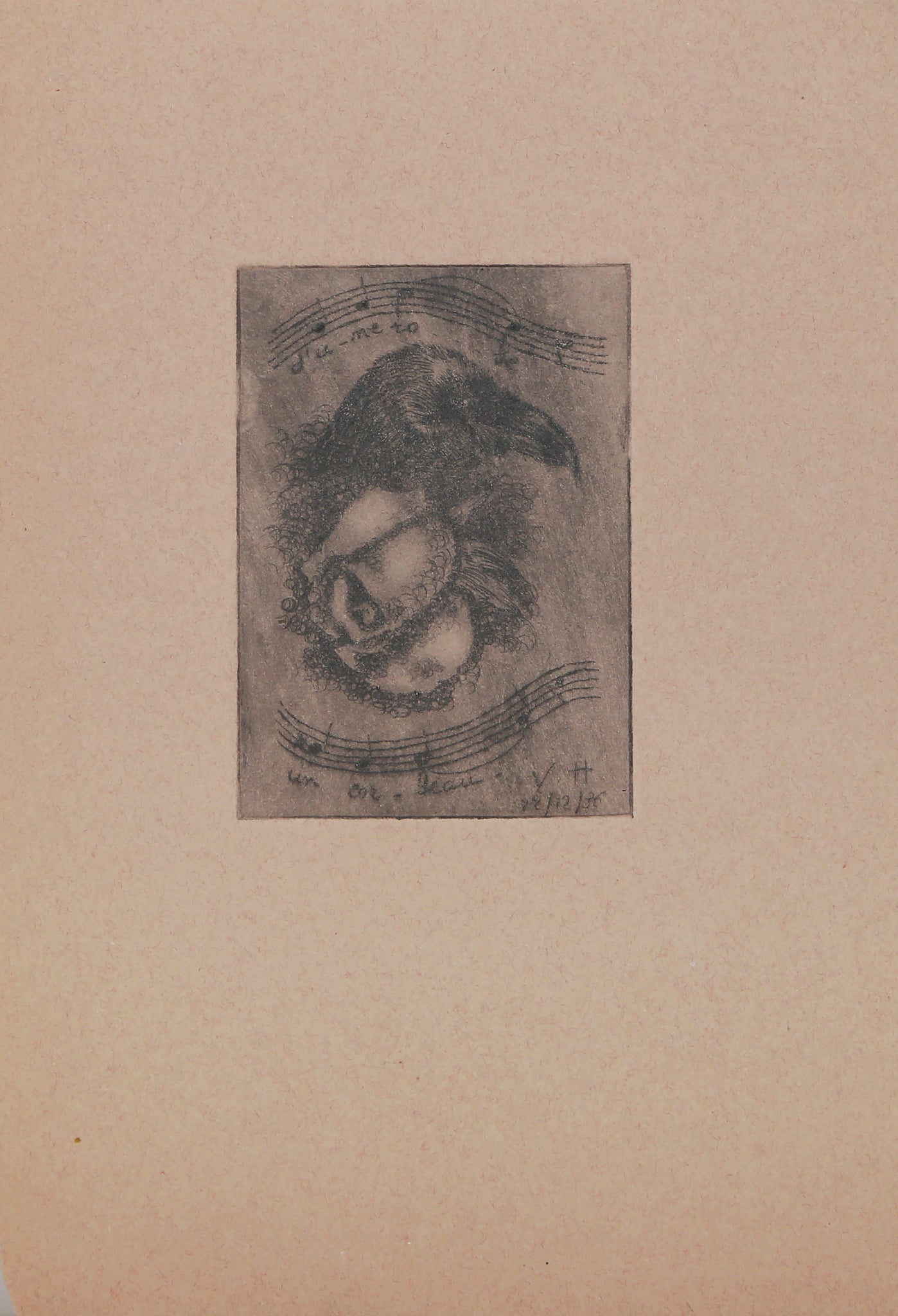 Valentine Hugo, French (1887 - 1968) - D'u Me To Un Crobeau. Year: 1936, Medium: Etching on wove paper, signed and dated in the plate, Image Size: 4.25 x 3 inches, Size: 10.5 x 7.25 in. (26.67 x 18.42 cm), Provenance: From the collection of the late Larry Saphire
