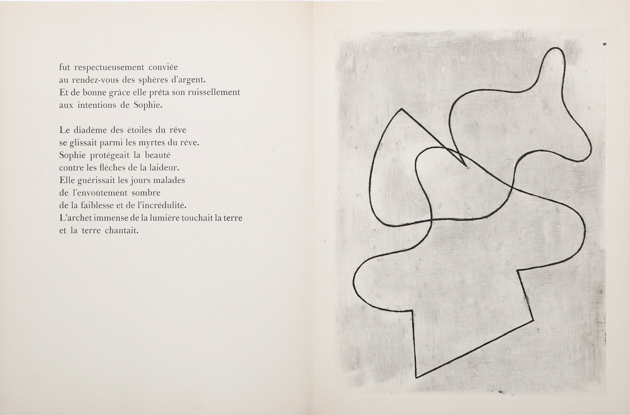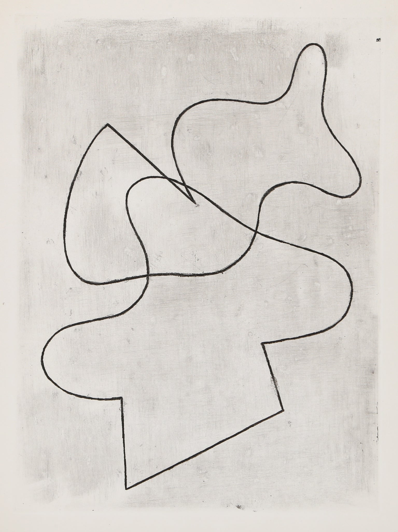 Jean Arp, French (1886 - 1966) - A Travers Les Myrtes du Reve. Portfolio: Vers Le Blanc Infini, Year: 1960, Medium: Etching on BFK Rives, Edition: 349/499, Image Size: 13 x 9.5 inches, Size: 15 x 11 in. (38.1 x 27.94 cm), Printer: George LeBlanc, Paris, Publisher: La Rose des Vents, Paris, Reference: ARNTZ 405-412