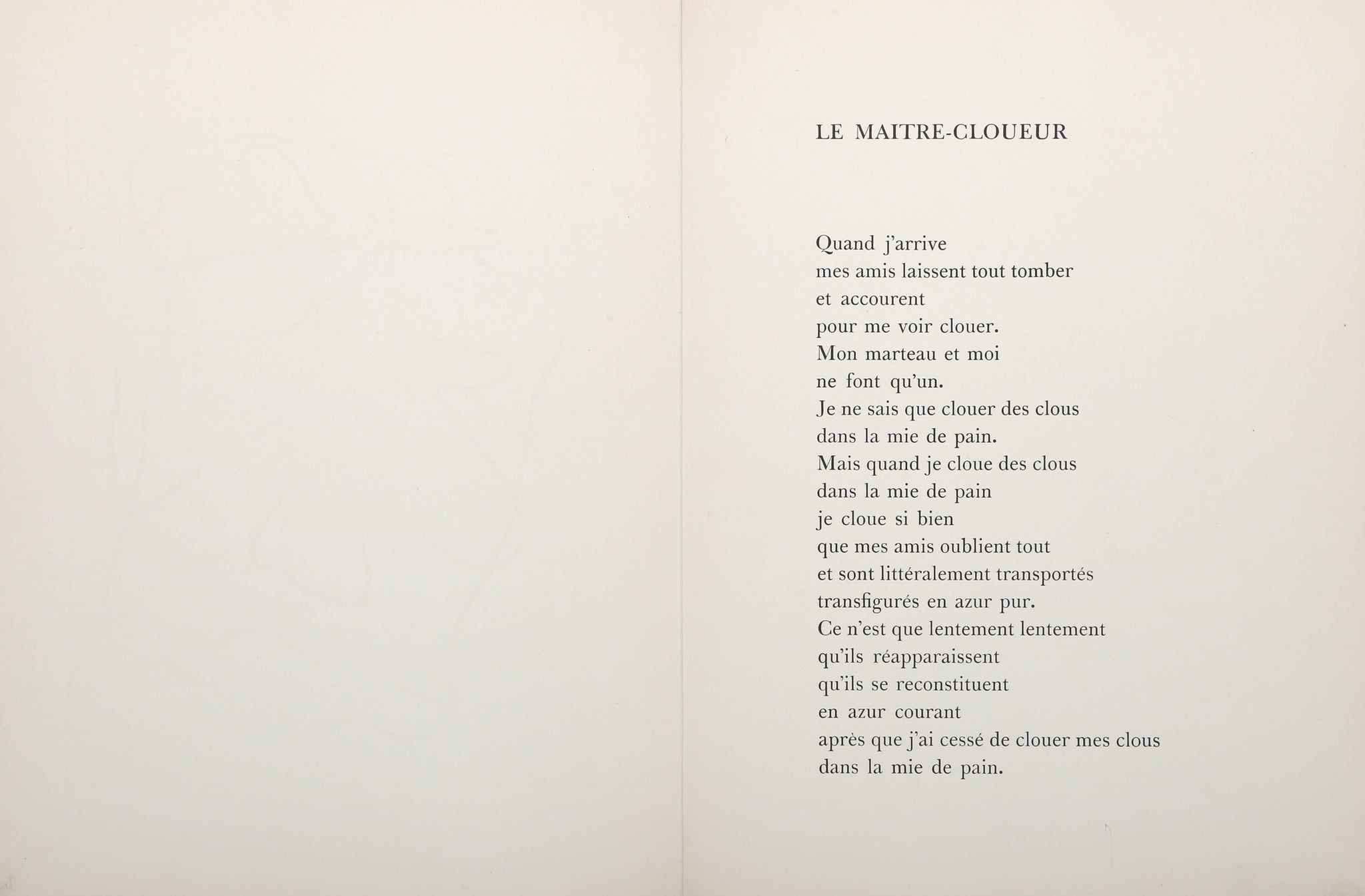 Jean Arp, French (1886 - 1966) - La Maitre-Cloueur. Portfolio: Vers Le Blanc Infini, Year: 1960, Medium: Etching on BFK Rives, Edition: 349/499, Image Size: 10.75 x 8.5 inches, Size: 15 x 11 in. (38.1 x 27.94 cm), Printer: George LeBlanc, Paris, Publisher: La Rose des Vents, Paris, Reference: ARNTZ 405-412