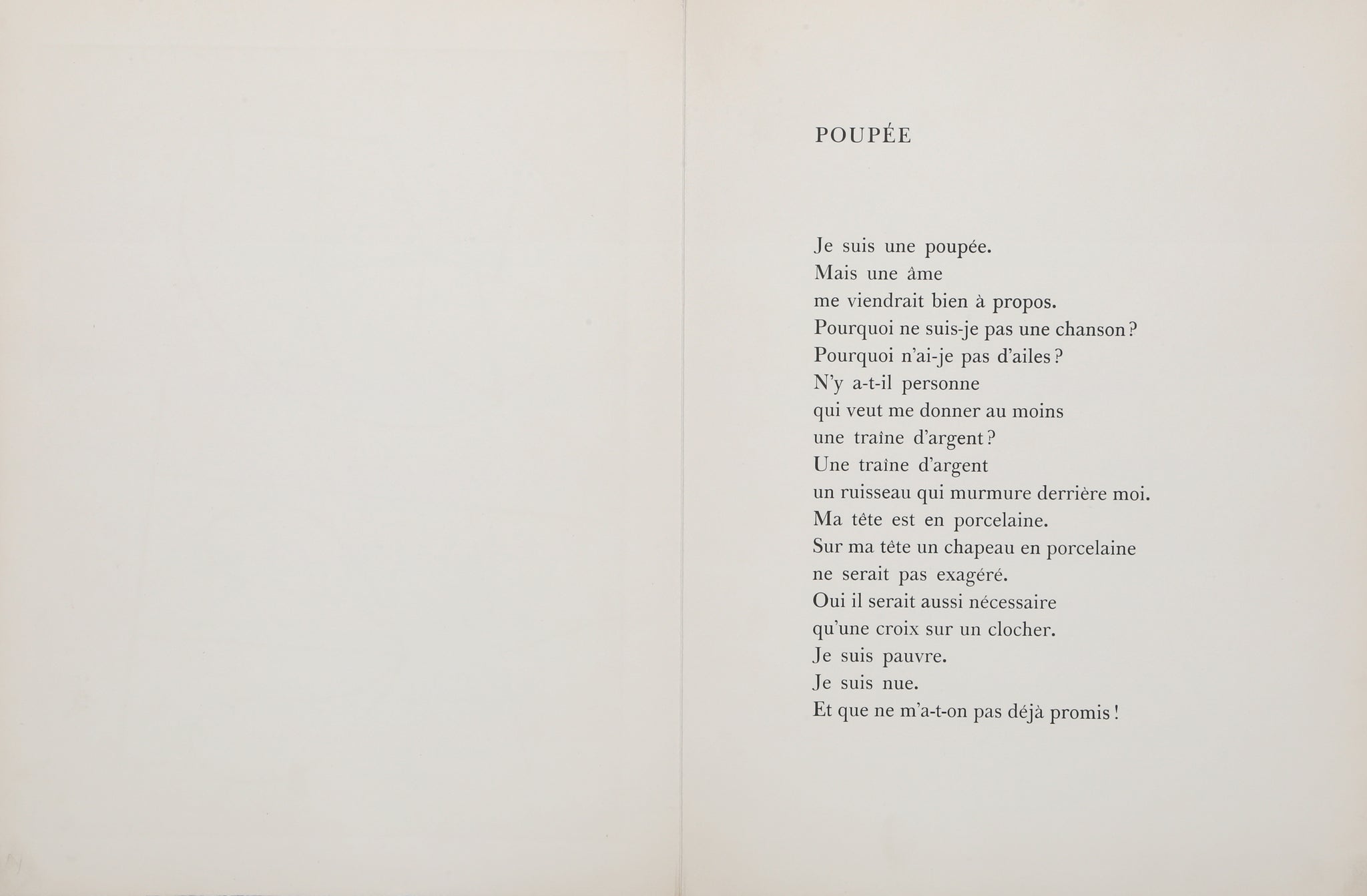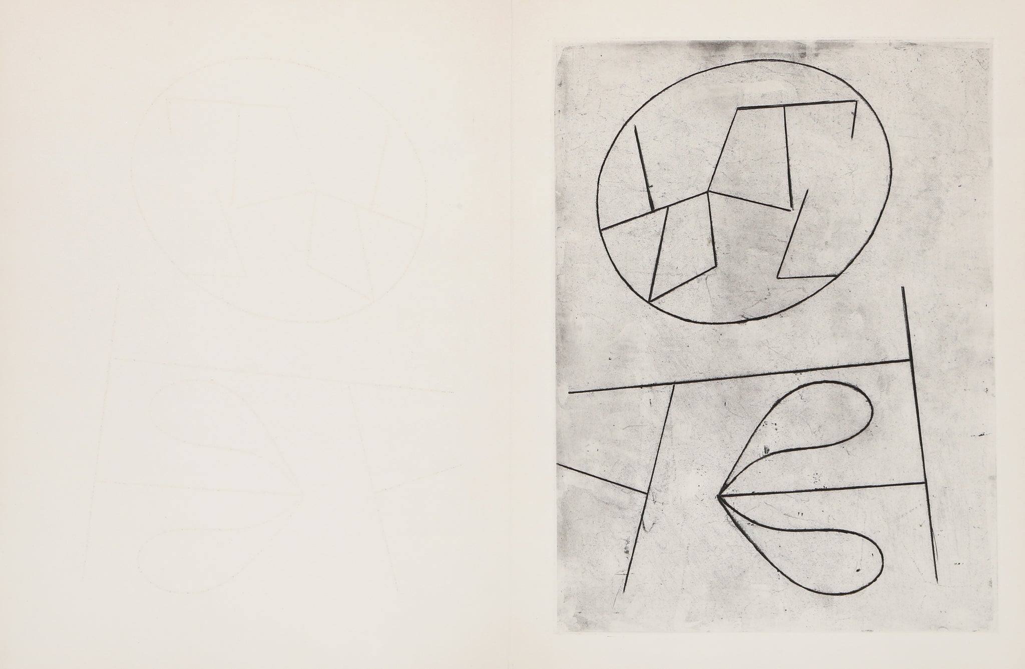 Jean Arp, French (1886 - 1966) - Poupee. Portfolio: Vers Le Blanc Infini, Year: 1960, Medium: Etching on BFK Rives, Edition: 349/499, Image Size: 12.75 x 9.5 inches, Size: 15 x 11 in. (38.1 x 27.94 cm), Printer: George LeBlanc, Paris, Publisher: La Rose des Vents, Paris, Reference: ARNTZ 405-412