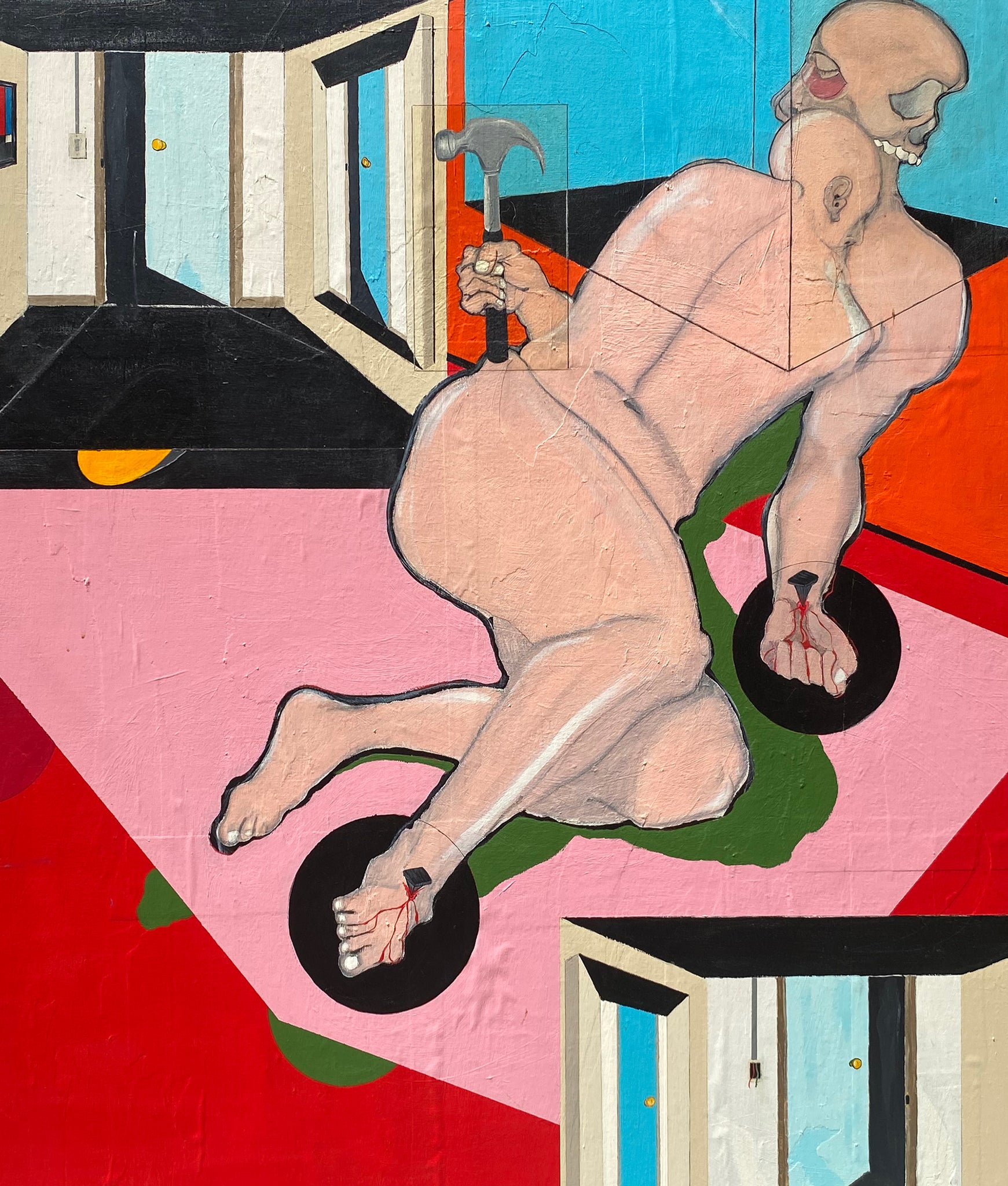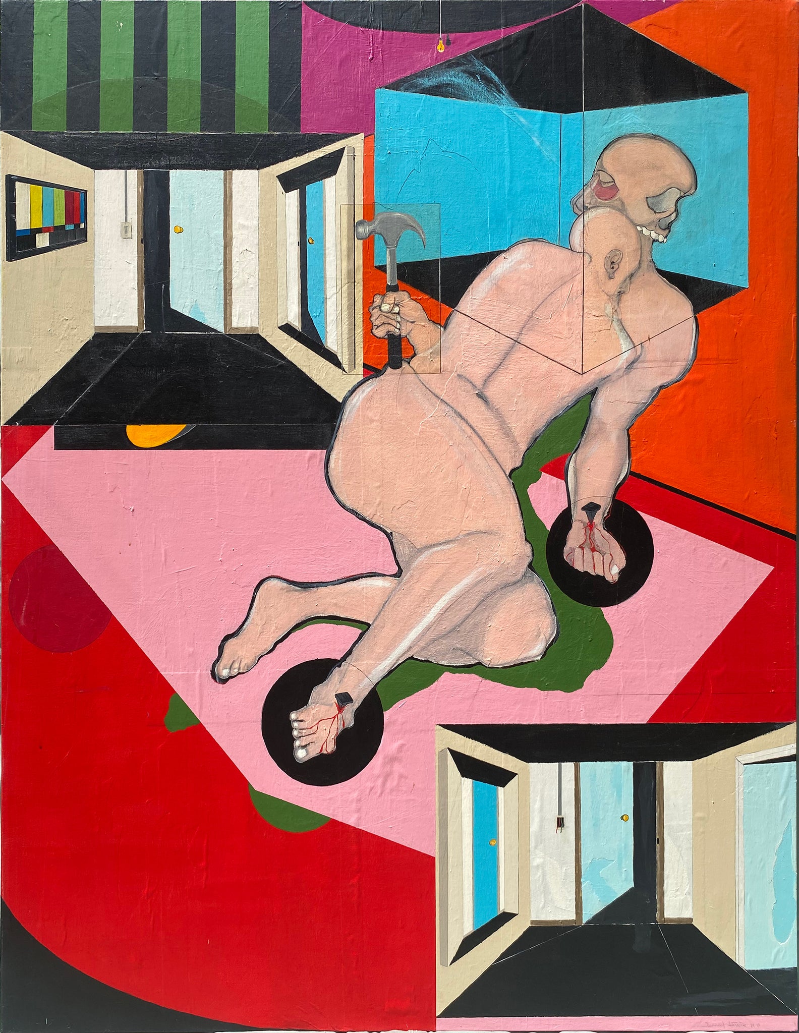 Samuel Iztueta, American - El Cuadvado. Year: 2013, Medium: Oil and Acrylic on Canvas, signed and titled with writing verso, Size: 60 x 48 in. (152.4 x 121.92 cm)