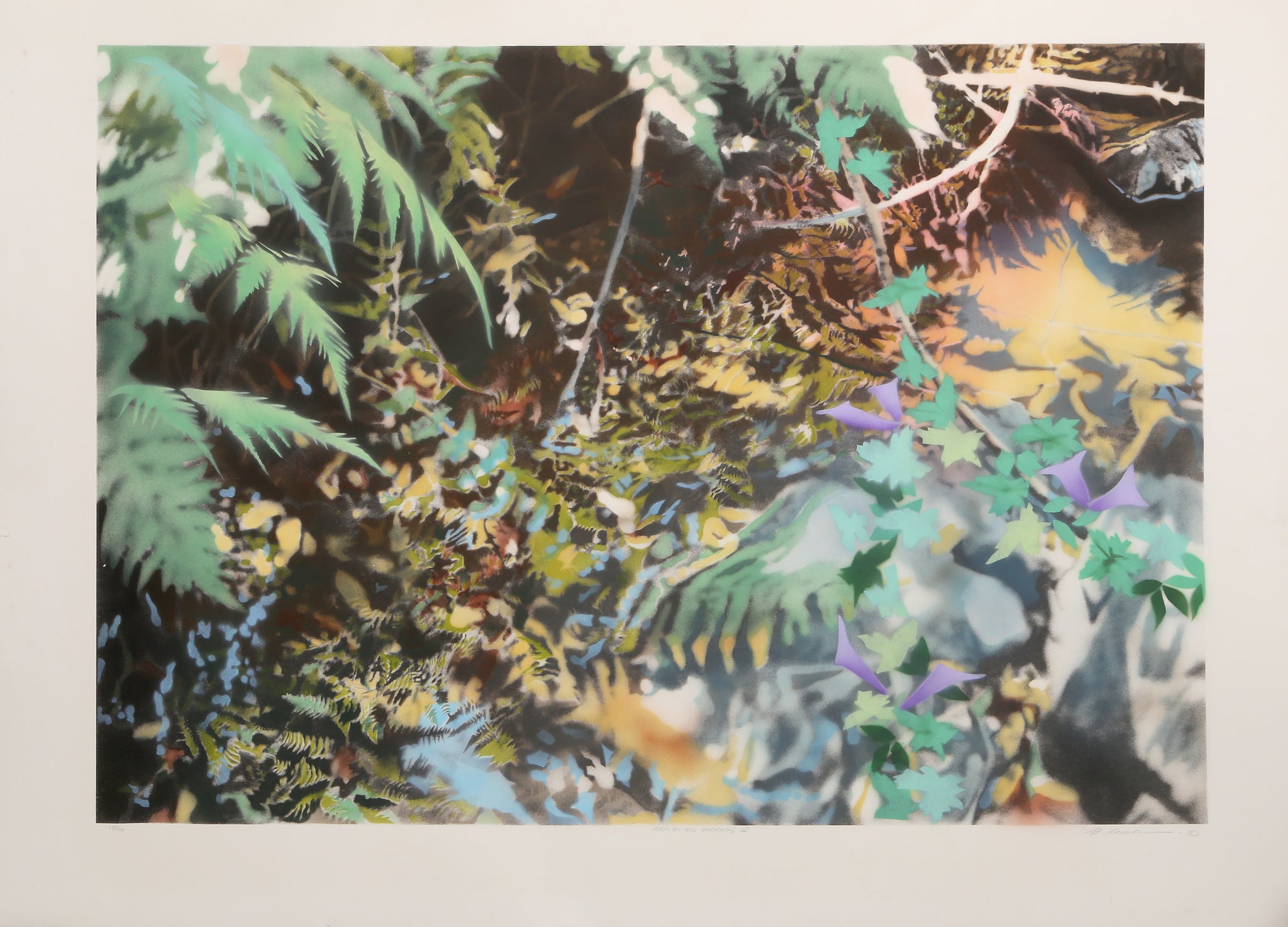 Discover the serene beauty of nature through this hand-signed screenprint that captures jungle reflections with Modern Art and Landscape movement influences. David T. Kessler masterfully depicts foliage, forest, and water reflections in this contemplative piece. The Landscape movement's tradition combines with modern techniques to create a meditative viewing experience. This unique screenprint brings the tranquility of reflected nature into any space.