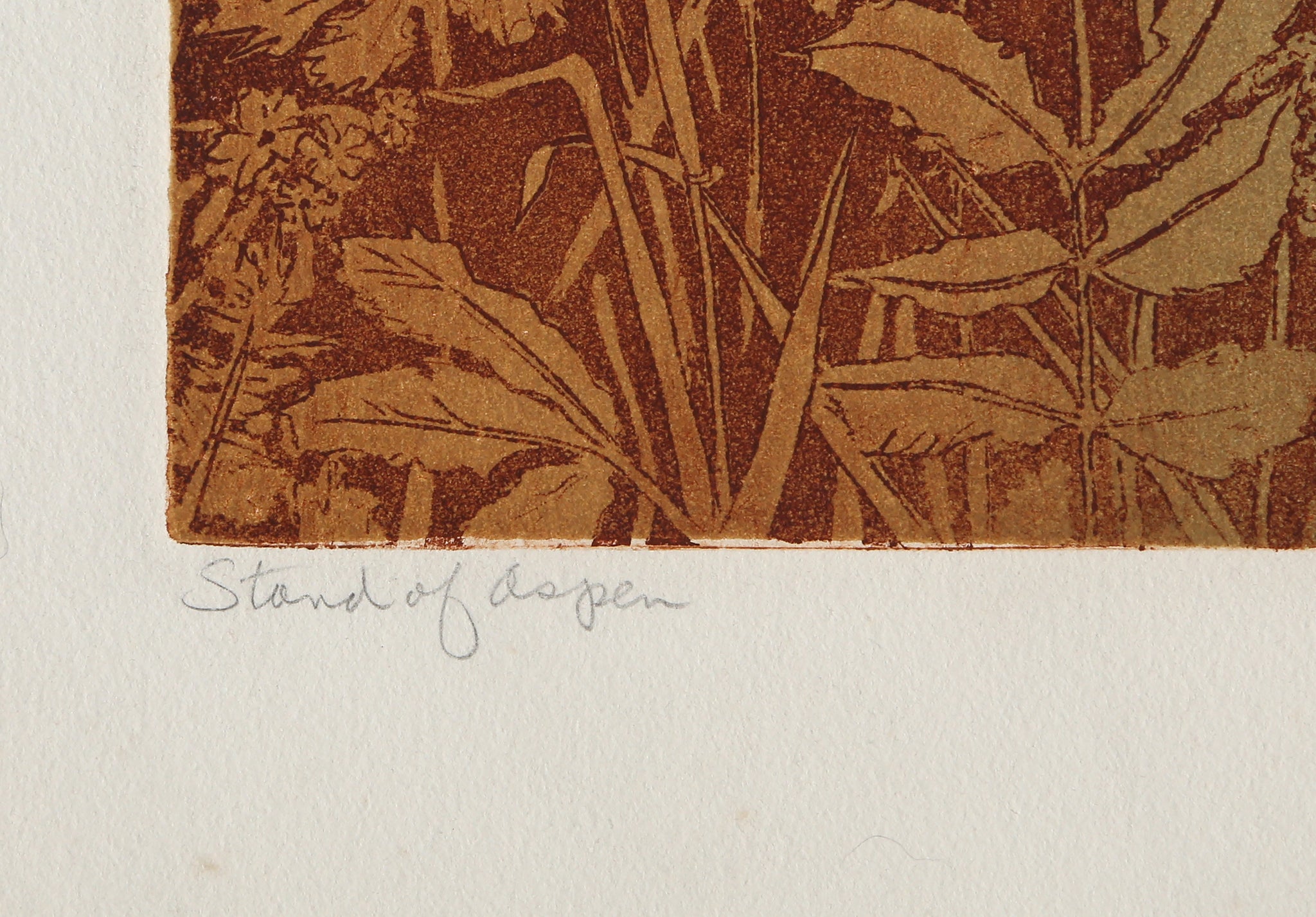 Roslyn Rose's hand-signed etching captures the serene beauty of white-barked aspen trees in stunning photorealistic detail. This landscape print showcases the artist's mastery of texture and light, rendering each tree with remarkable precision. The forest scene evokes tranquility and natural elegance, making it an ideal addition to any collection celebrating the American wilderness and botanical art.