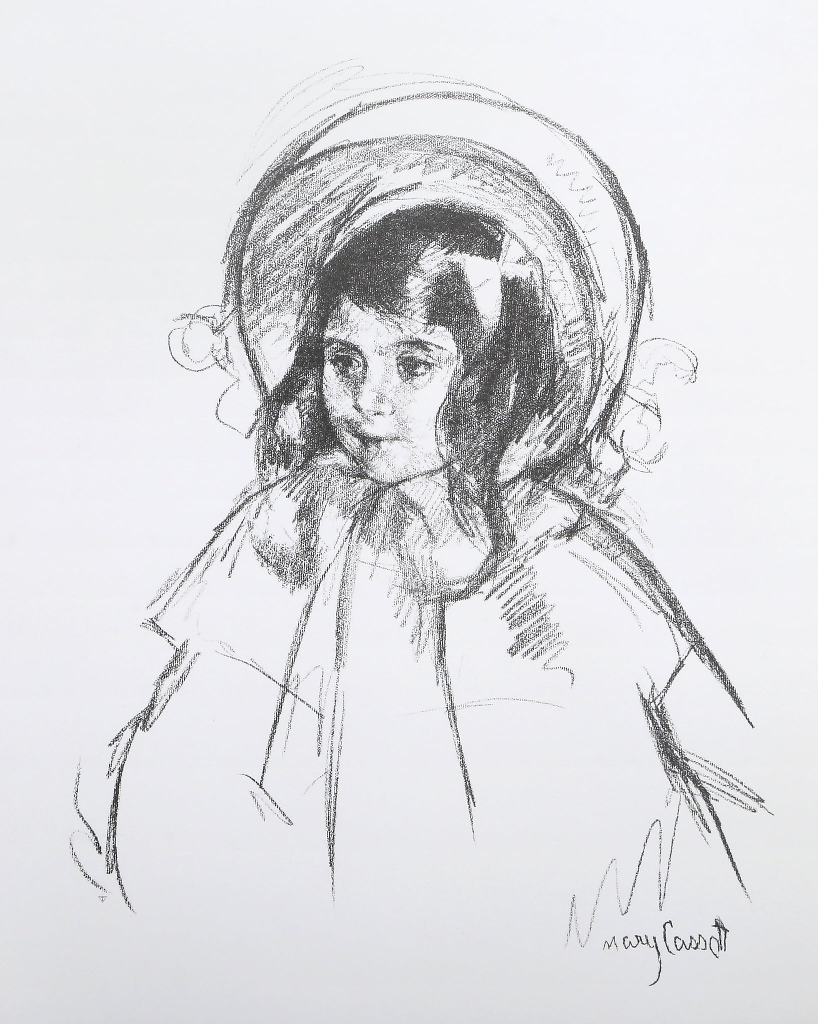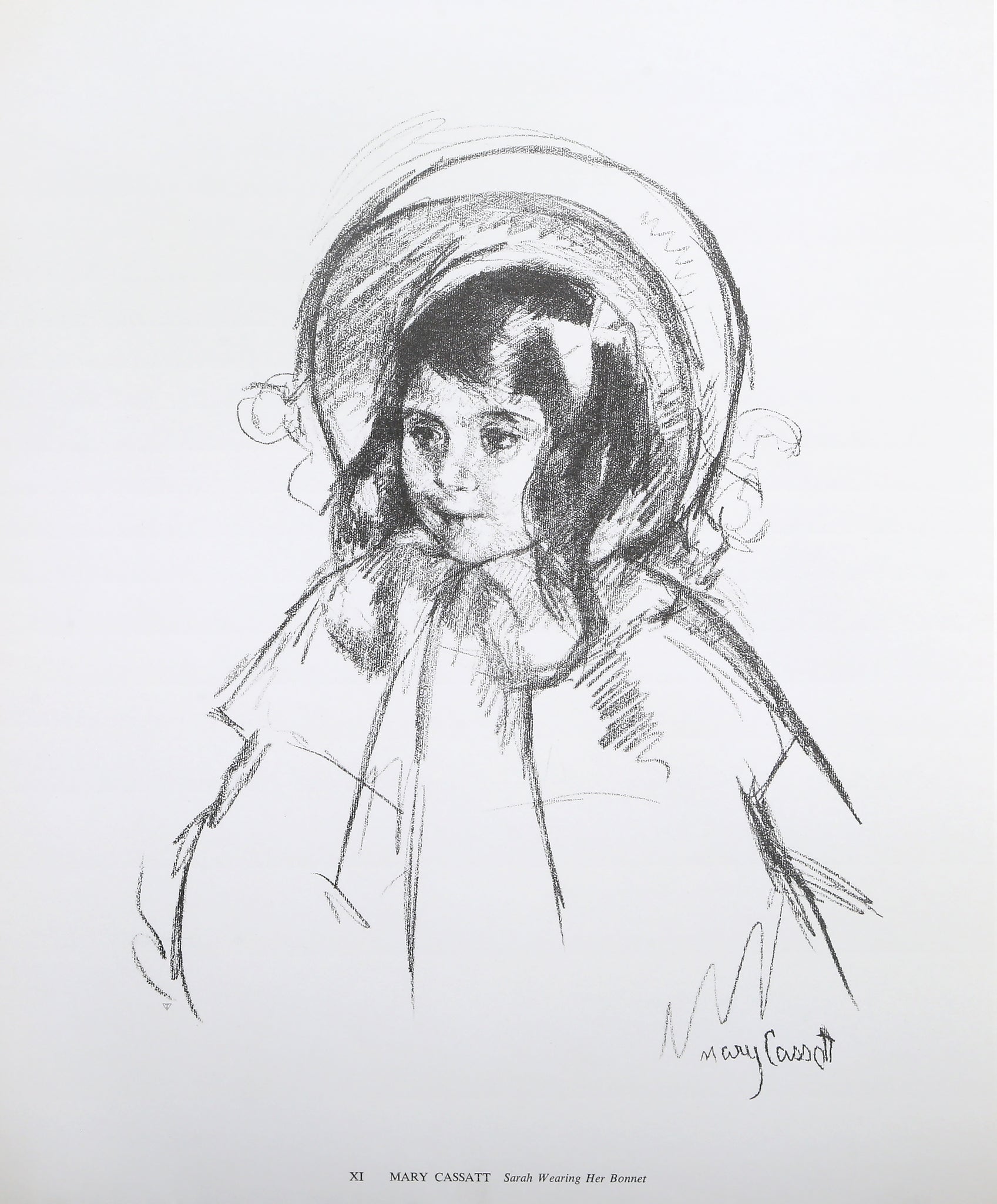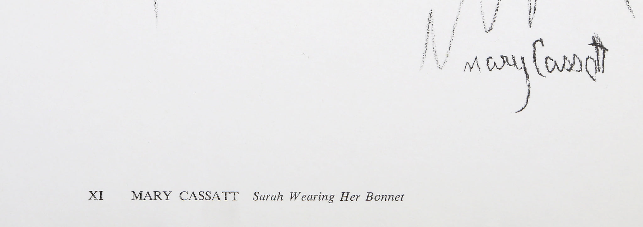 Mary Cassatt, After, American (1844 - 1926) - Sarah Wearing Her Bonnet, Portfolio: Twenty Four Masterpieces of Graphic Art, Year: Year Printed 1974, Medium: Collotype, Image Size: 14 x 11 inches, Size: 17 x 14 in. (43.18 x 35.56 cm), Printer: Triton Press, Inc, New York, Publisher: Triton Press, Inc, New York