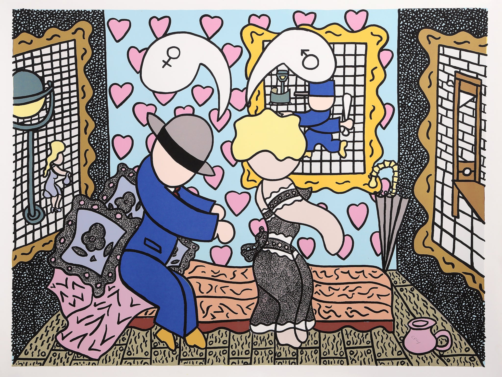 William Copley, American (1919 - 1996) - Man and Woman. Year: circa 1978, Medium: Screenprint on Somerset, signed and numbered in pencil, Edition: 200, AP 30, Size: 26 x 34 in. (66.04 x 86.36 cm)