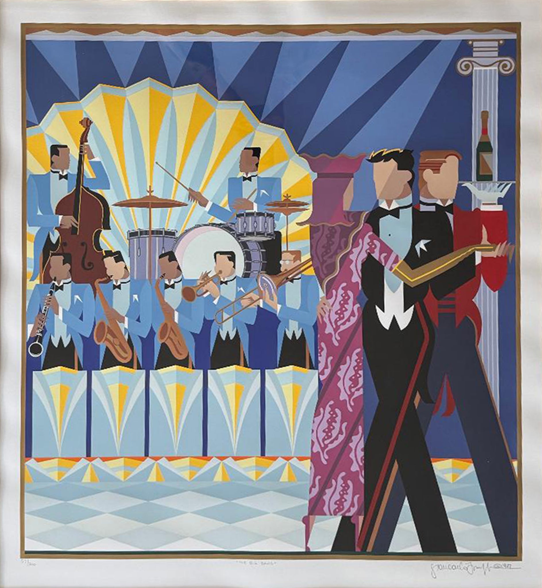 Giancarlo Impiglia, Italian/American (1940 - ) - The Big Band. Year: 1987, Medium: Screenprint, signed and numbered in pencil, Edition: 57/300, Size: 31 x 28.5 in. (78.74 x 72.39 cm), Frame Size: 42 x 37.5 inches