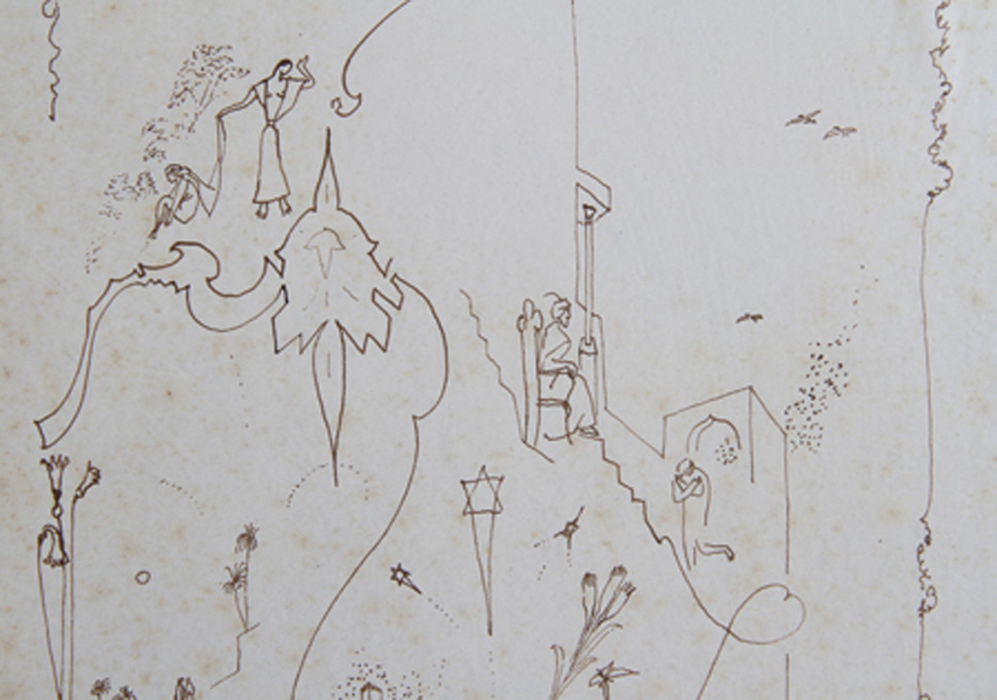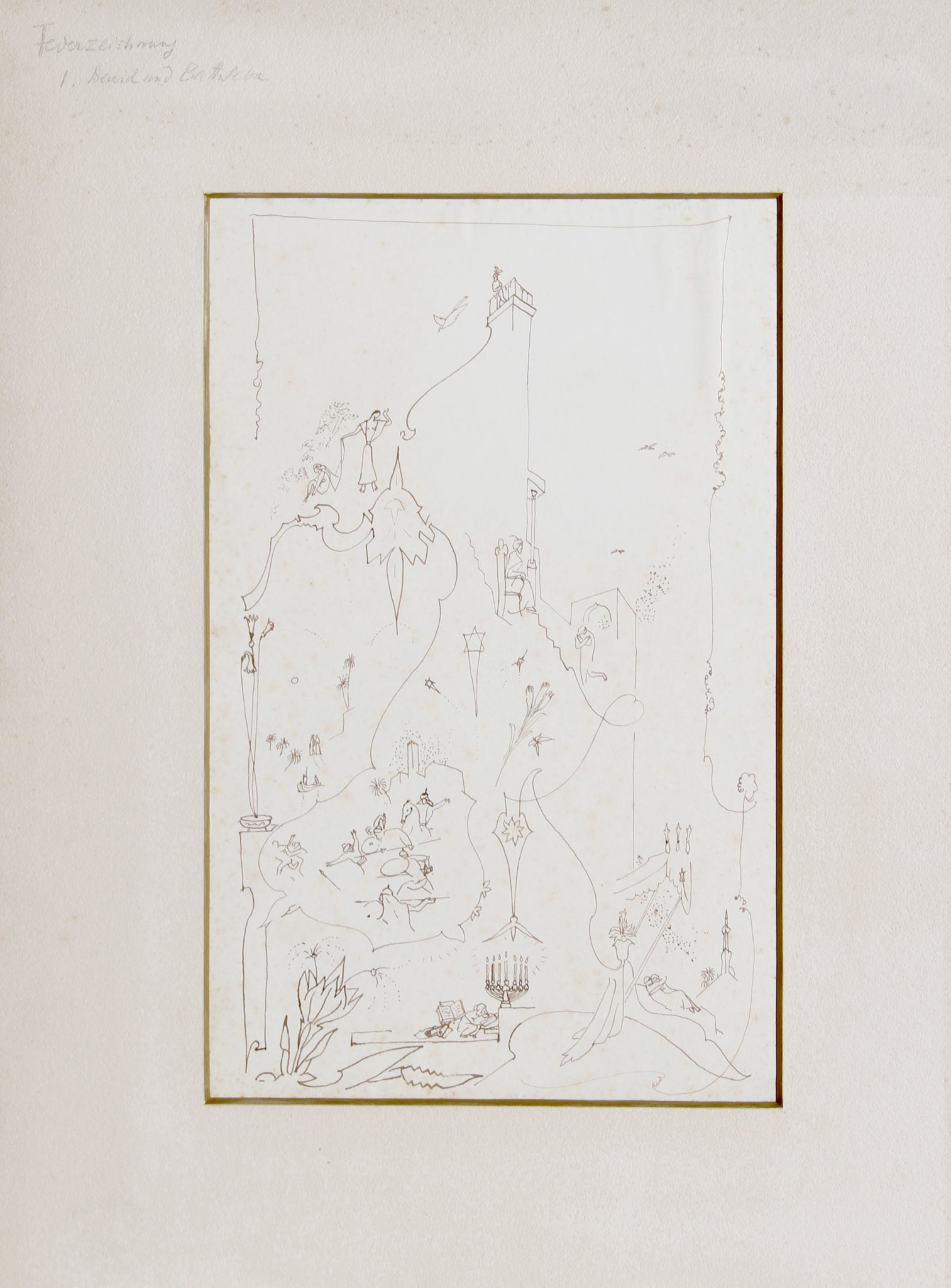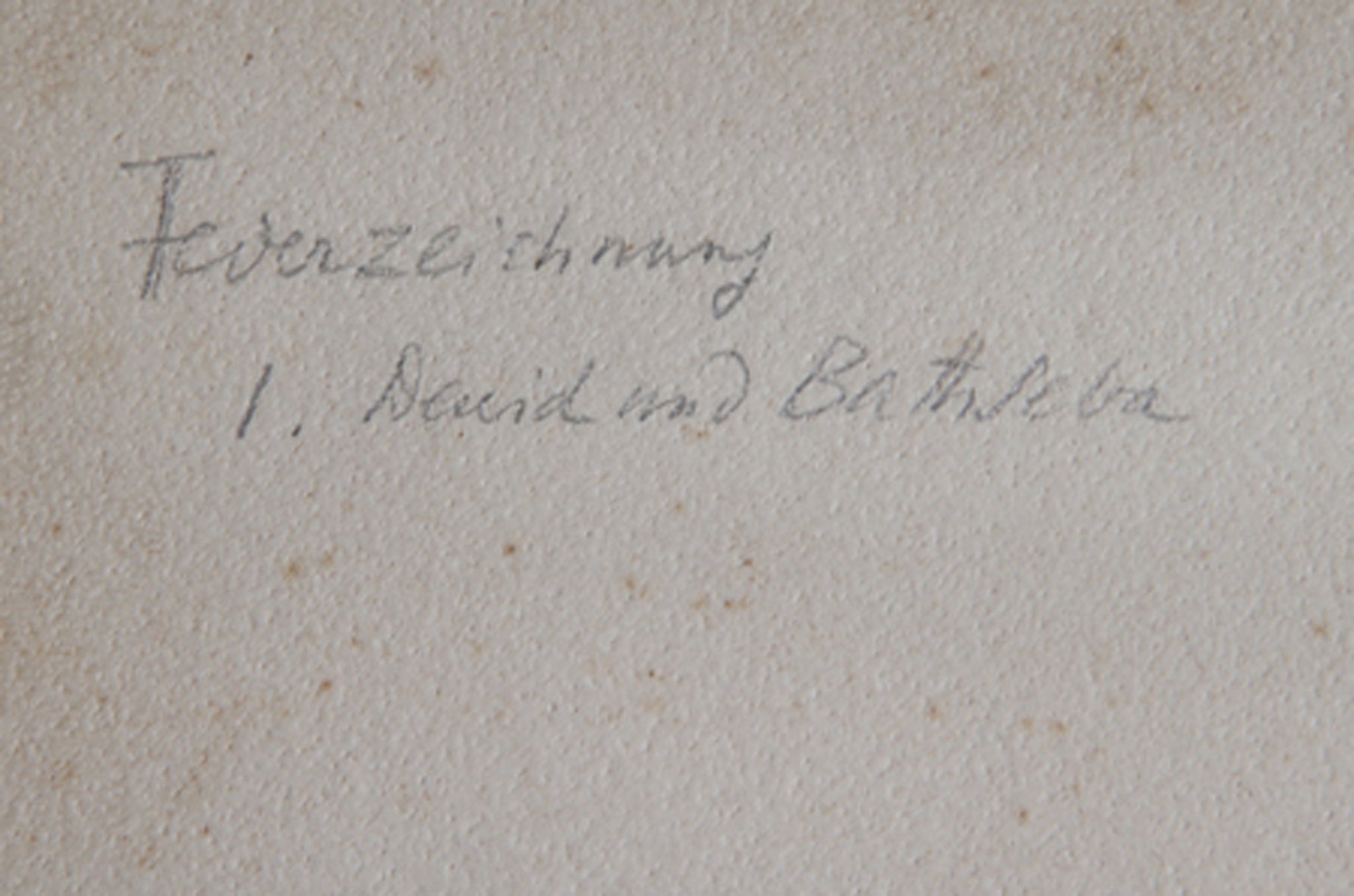 Eugen von Kahler, Czech (1882 - 1911) - David and Bathsheva. Medium: Pen Drawing, signed, titled and medium labeled in pencil, Image Size: 13 x 8.5 inches, Size: 20 in. x 14.5 in. (50.8 cm x 36.83 cm)