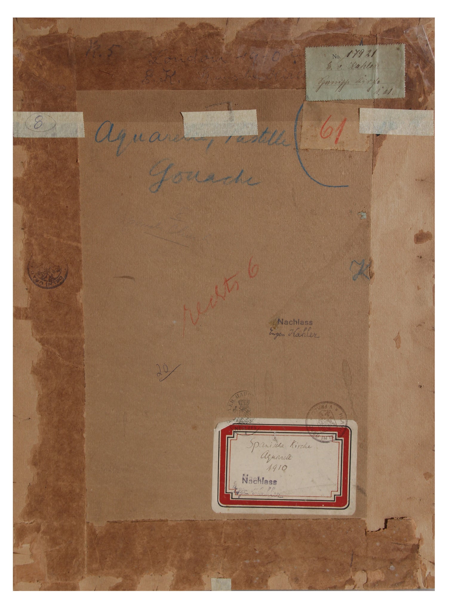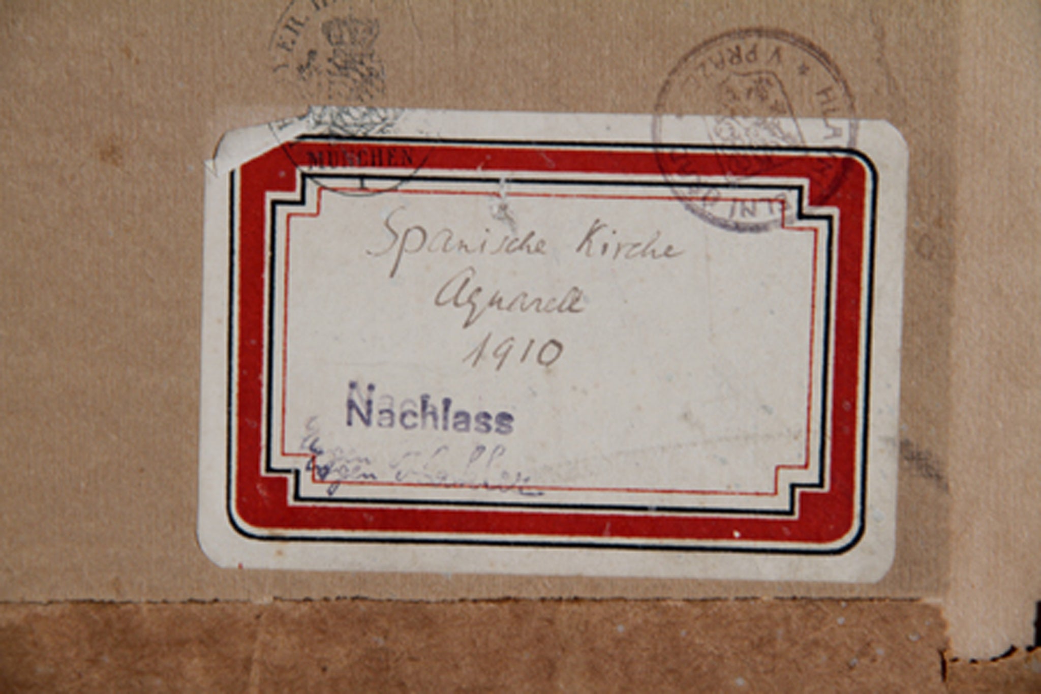 Eugen von Kahler, Czech (1882 - 1911) - Spanish Church. Year: 1910, Medium: Watercolor, signed, titled, dated and medium labeled in pencil, Image Size: 11 x 9 inches, Size: 17 in. x 12.5 in. (43.18 cm x 31.75 cm)