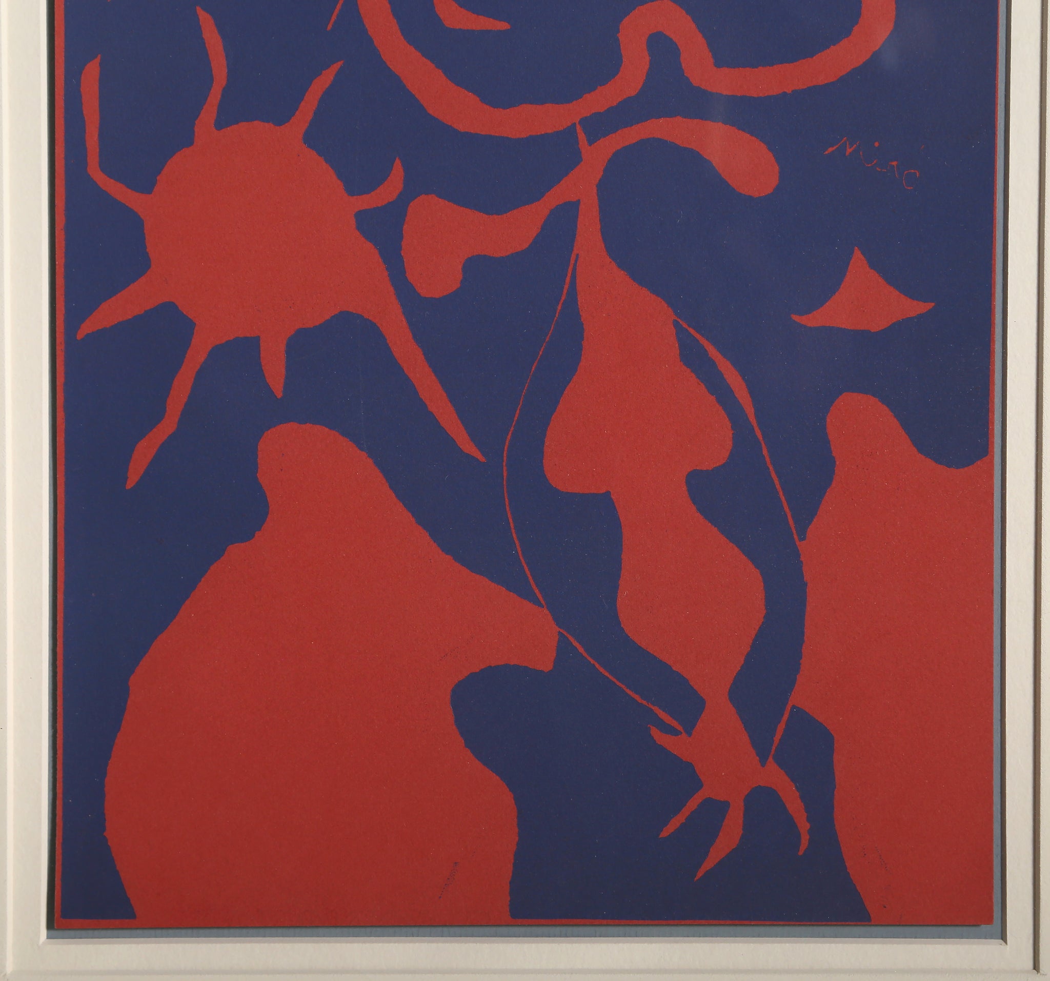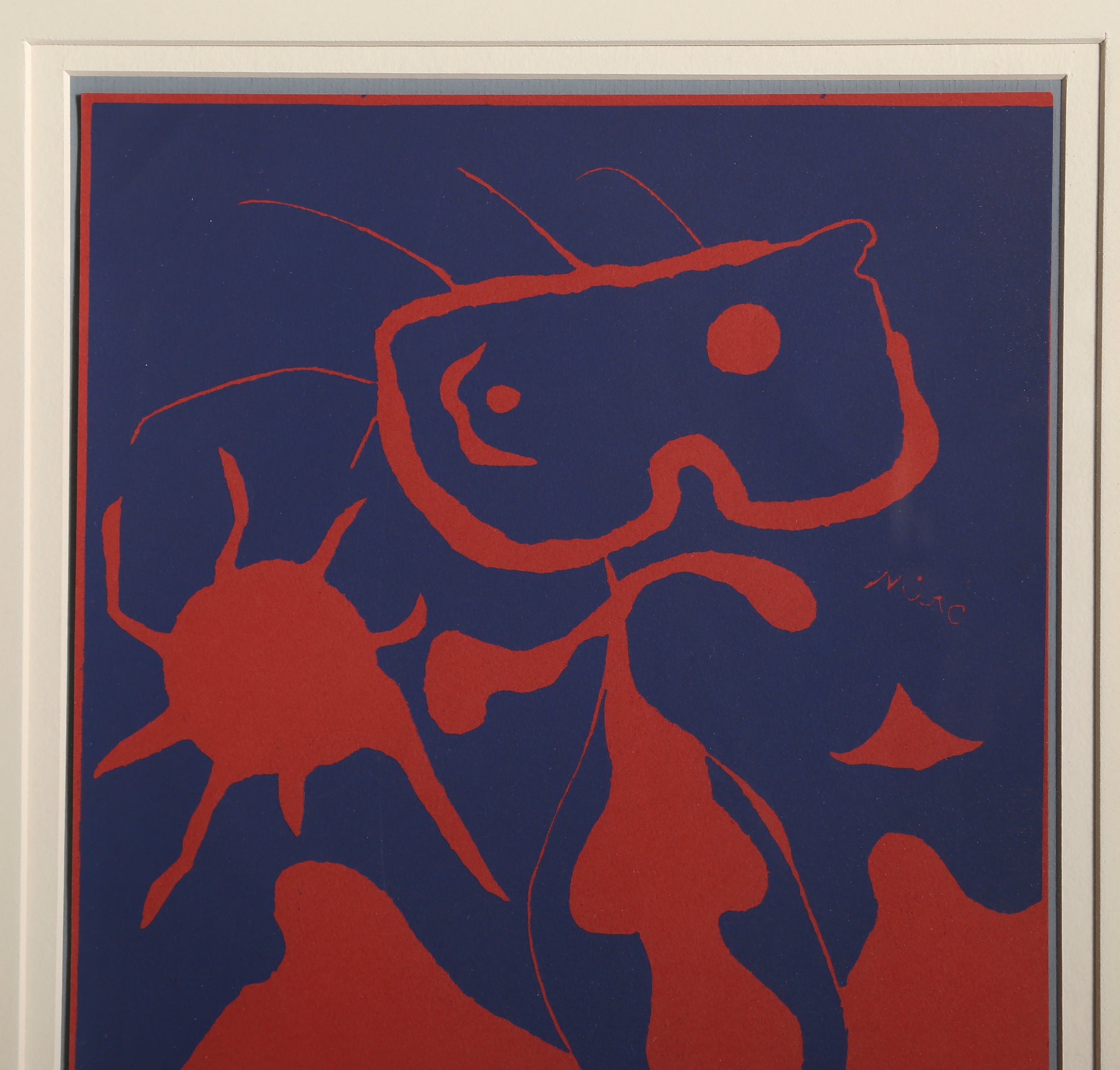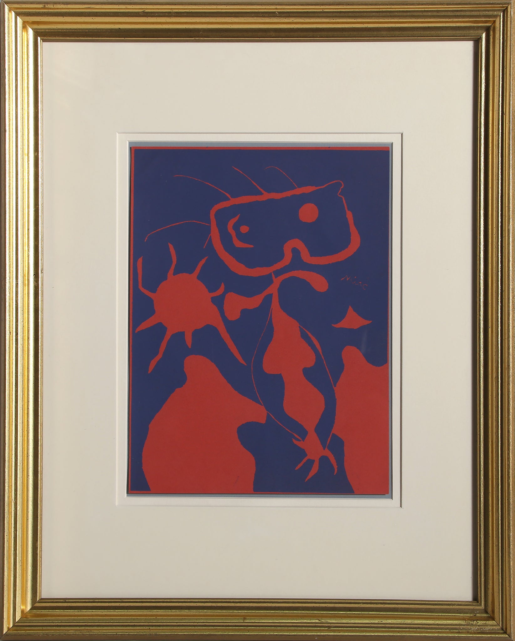 Immerse yourself in the dreamlike world of Surrealism with this captivating Modern Art linocut featuring Joan Miro's signature abstract forms, including a mysterious female figure, celestial sun, and organic tree elements. This Surrealist print exemplifies Miro's unique visual language, where biomorphic blobs and abstract shapes merge with figurative elements to create a poetic composition that transcends rational interpretation. The artist's playful yet profound approach to form and symbol invites viewers into a realm where the subconscious meets artistic expression. A museum-quality addition for collectors of Modern Art and Surrealism seeking prints that celebrate imaginative freedom and symbolic depth.