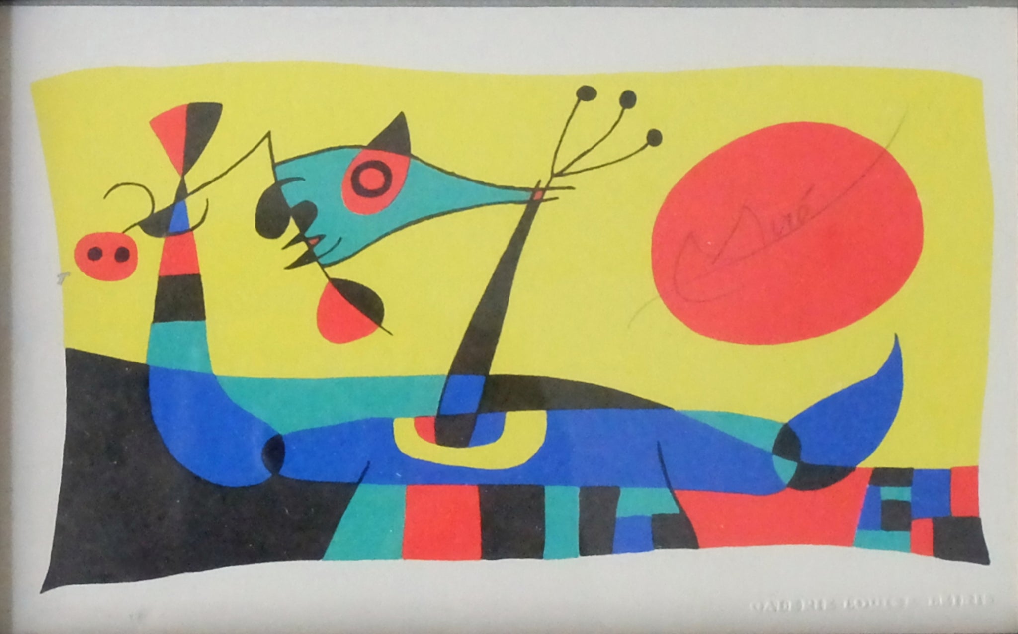 Joan Miro, Spanish (1893 - 1983) - Composition II (Peacock Feathers). Portfolio: Joan Miro by Prevert and Ribemont-Dessaignes, Year: 1960, Medium: Lithograph, Size: 12 x 21 in. (30.48 x 53.34 cm), Frame Size: 25 x 34 inches, Printer: Mourlot, Publisher: Maeght, Reference: Maeght 233