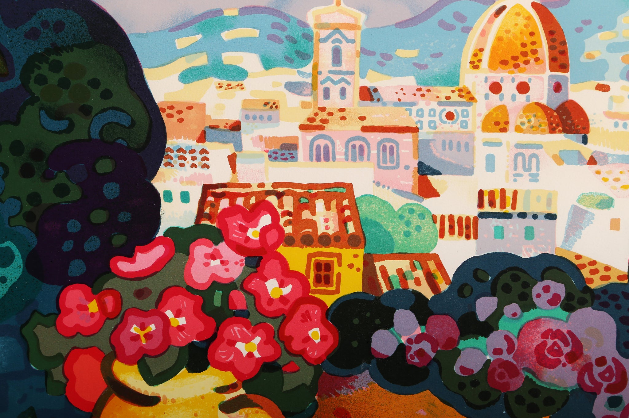 Guy Charon, French (1927 - 2021) - View of Florence. Year: circa 1975, Medium: Lithograph, signed and numbered in pencil, Edition: 250, Image Size: 18 x 22 inches, Size: 22 x 30 in. (55.88 x 76.2 cm), Frame Size: 26 x 30 inches