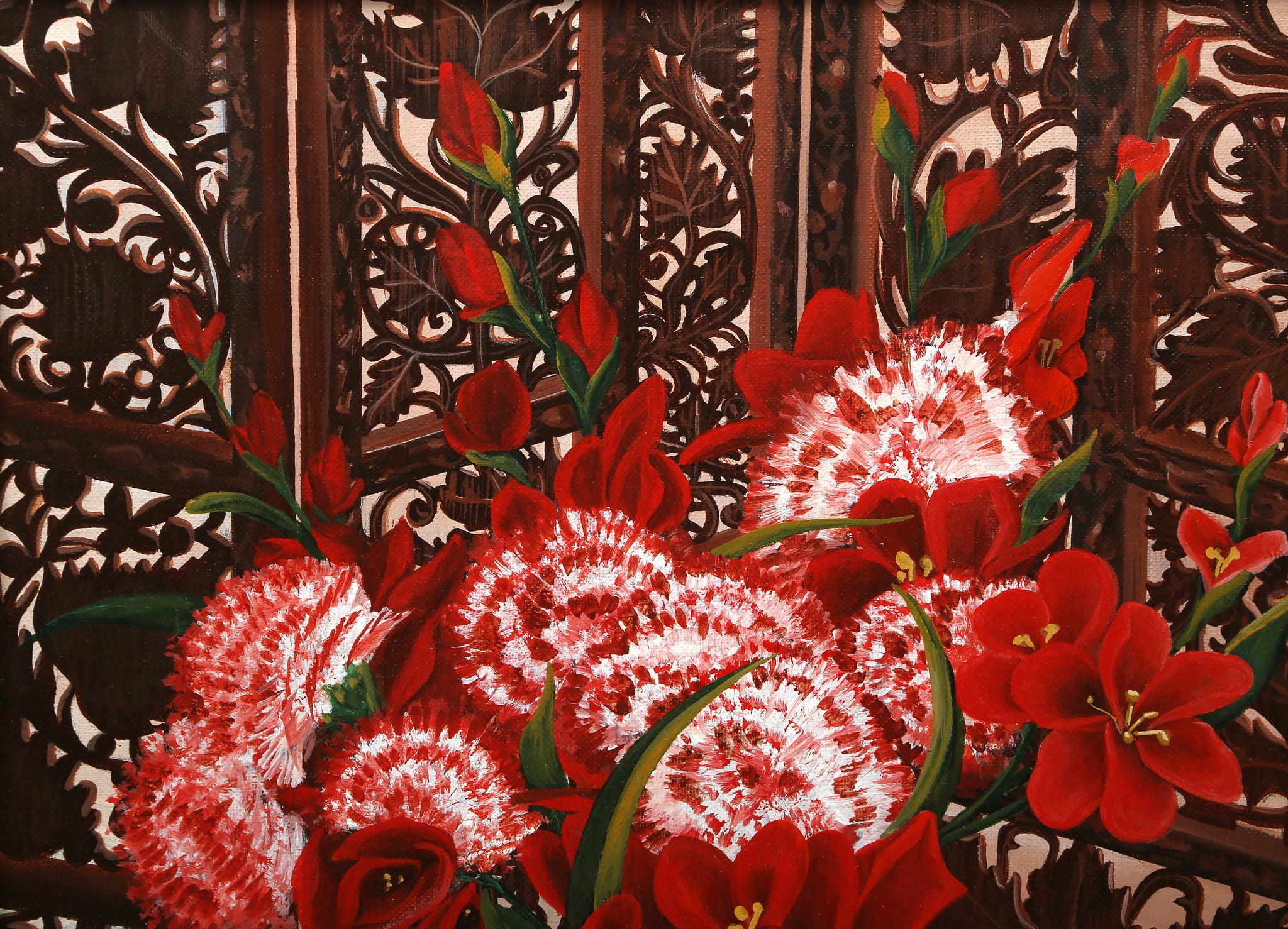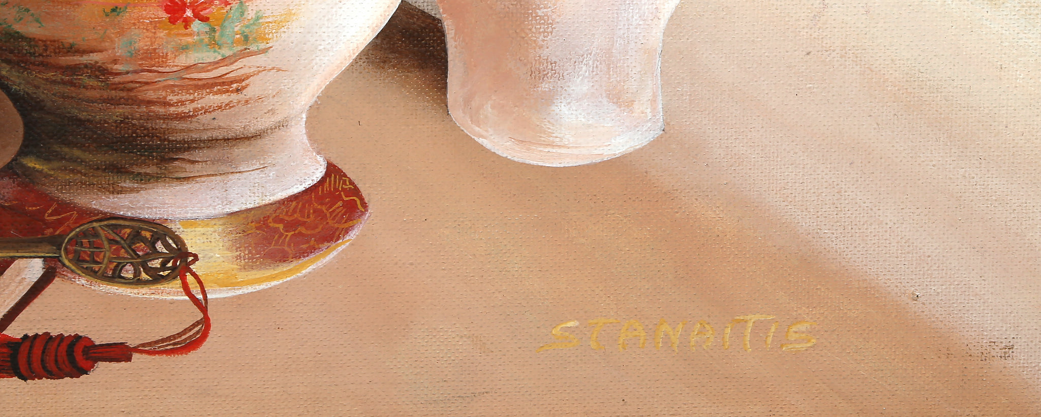 Stanaitis - Floral Still Life. Medium: Oil on canvas, mounted to masonite, signed lower right, Size: 20.5 x 16.5 in. (52.07 x 41.91 cm), Frame Size: 22 x 18 inches