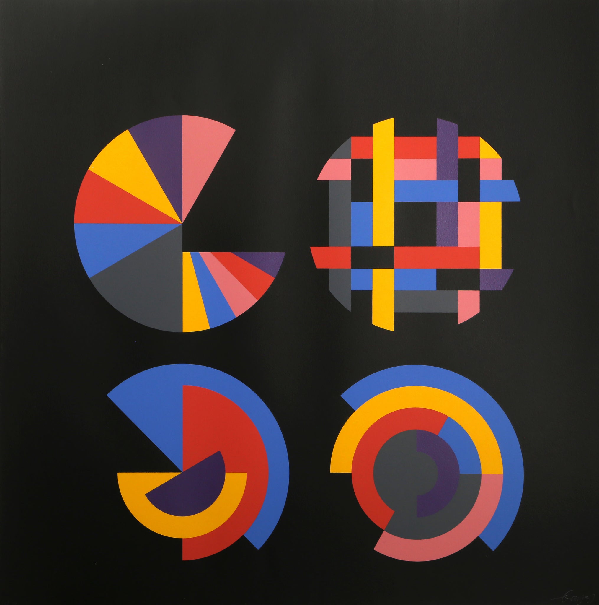 Herbert Bayer, Austrian (1900 - 1985) - Free Arrangements of Equal Parts. Year: circa 1968, Medium: Screenprint, signed and numbered in pencil, Edition: 12/75, Size: 29.75 x 29.5 in. (75.57 x 74.93 cm), Publisher: Kelpra Studio, London