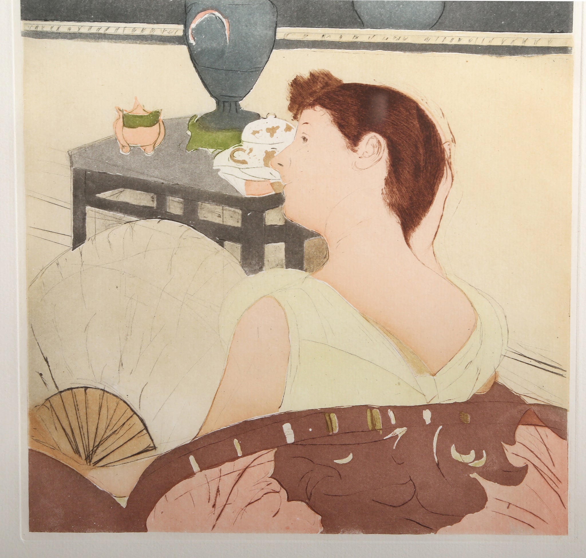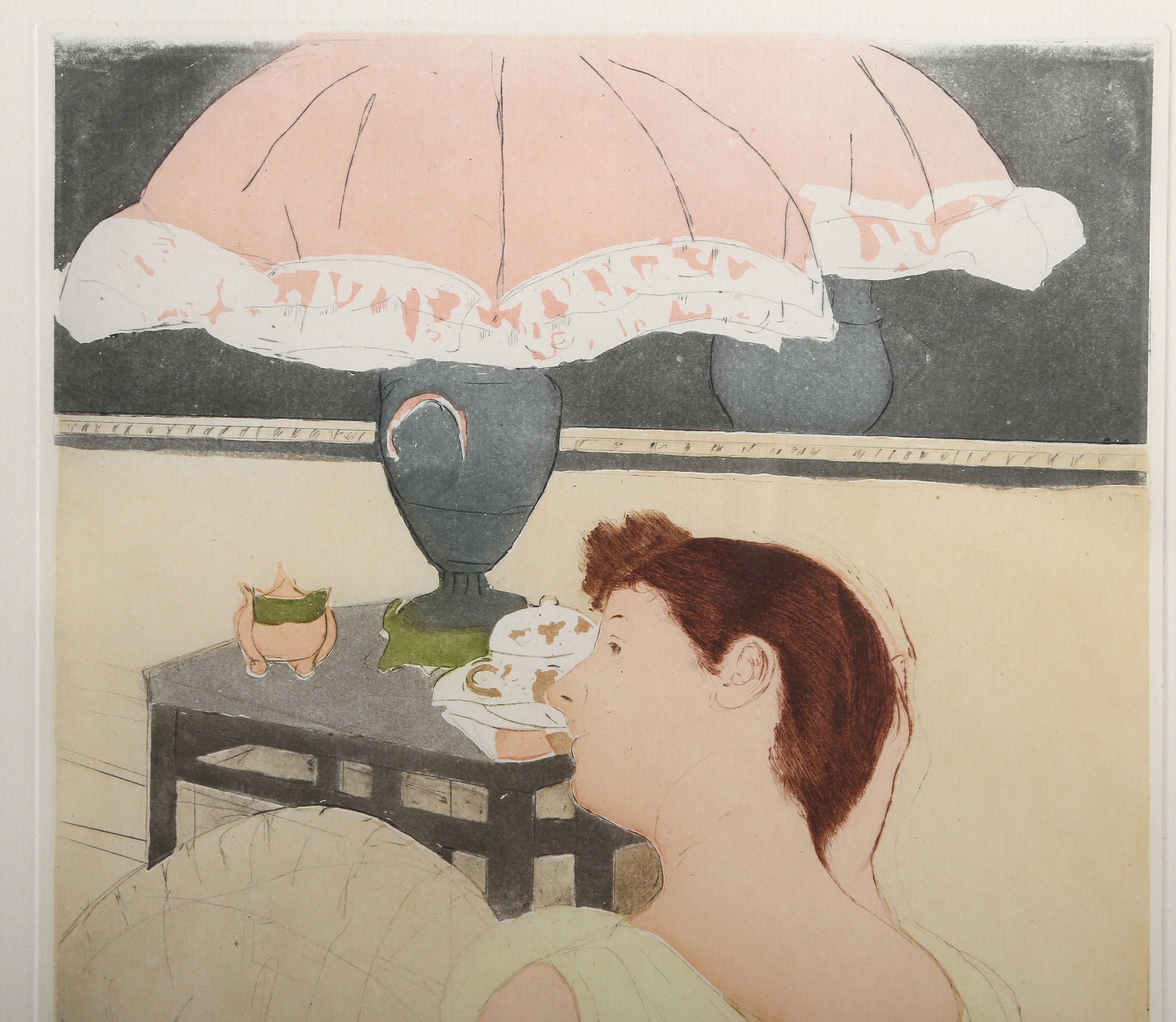Mary Cassatt, After, American (1844 - 1926) - The Lamp. Year: Date: 1991; Original Published: 1890 - 1891, Medium: Color Etching on Arches Paper, Image Size: 12.25 x 9.5 inches, Frame Size: 30.75 x 26 inches, Printer: Claude Tchou & Sons at atelier Rigal à Fontenay-aux-Roses, Publisher: Bibliotheque Nationale, France, 1991