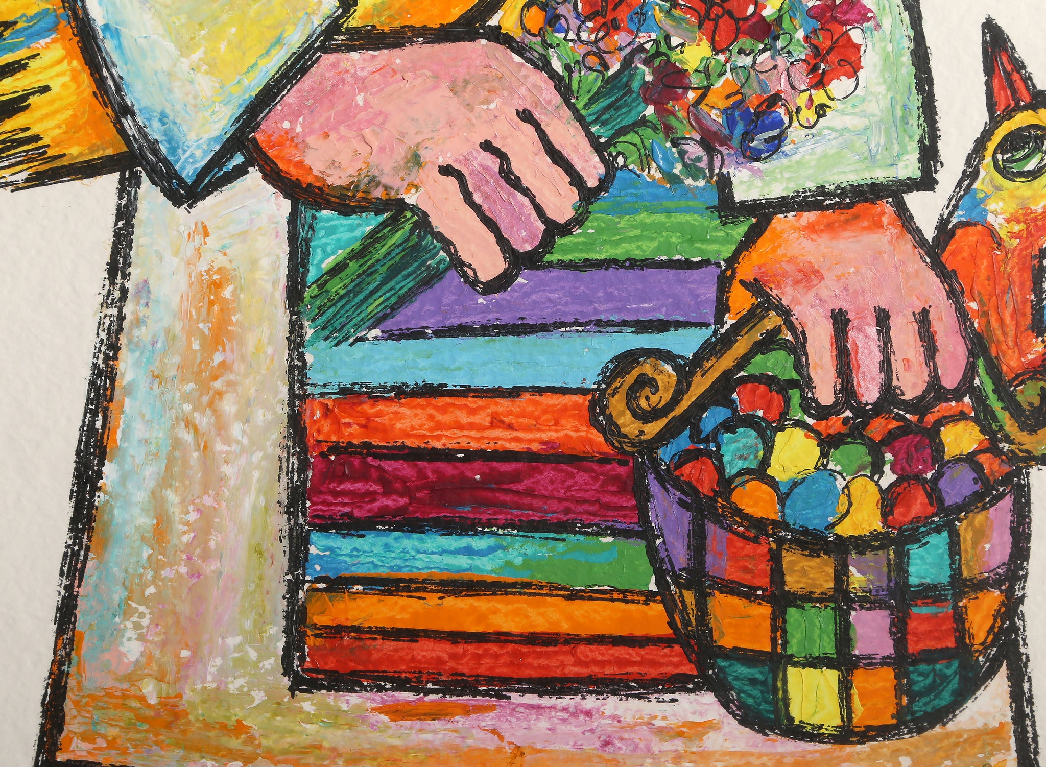 Jovan Obican, French/Yugoslavian (1918 - 1986) - Woman with Birds. Medium: Acrylic on paper, signed lower left, Size: 27 x 21 in. (68.58 x 53.34 cm), Frame Size: 36.5 x 30.5 inches