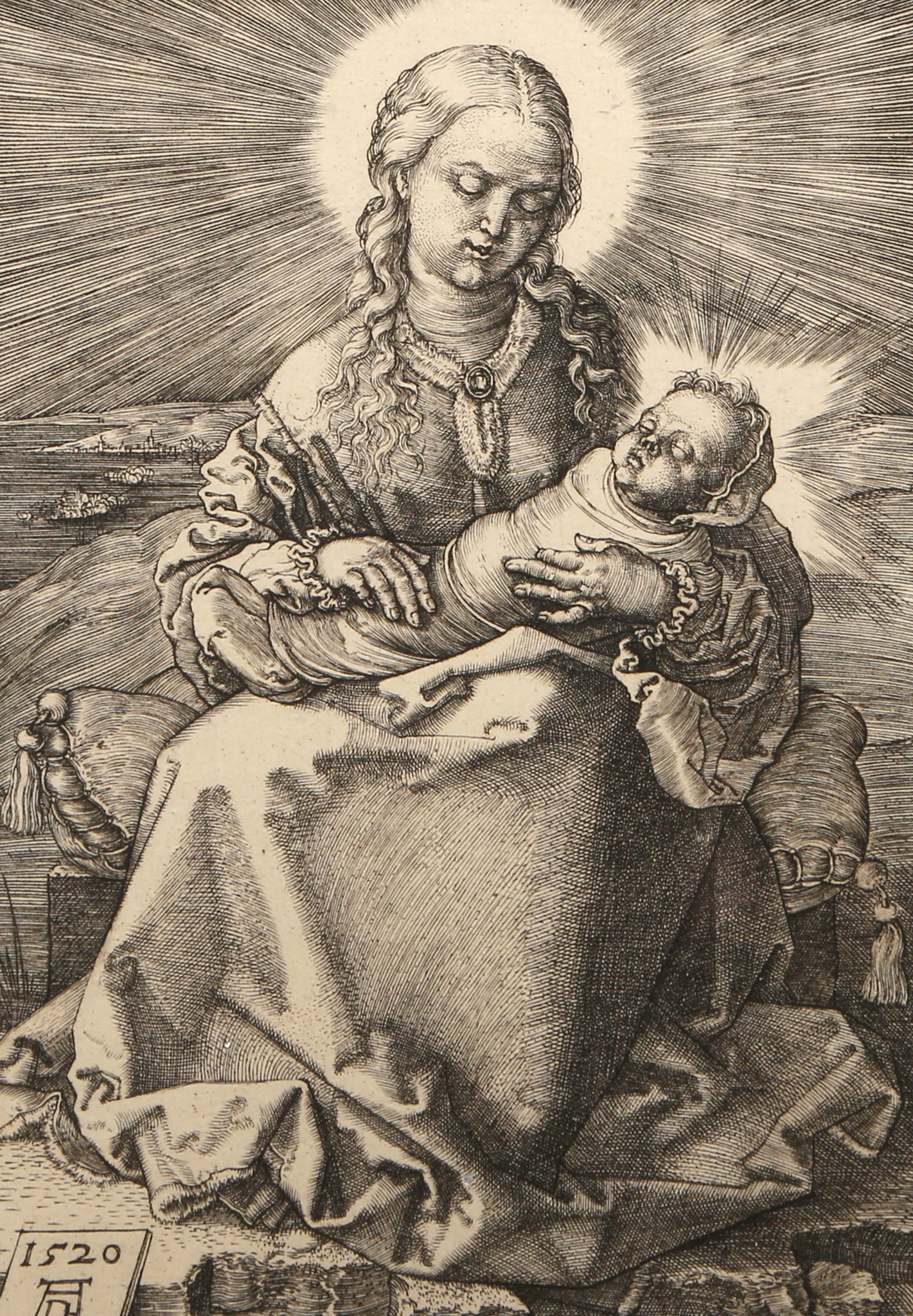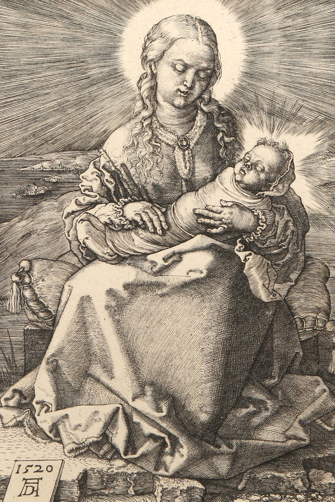 An etching after Albrecht Durer printed by Amand Durand. French Engraver and painter Charles Amand Durand, (1831-1905) is recognized and praised for accomplishing the difficult task of renewing original copper plate designs made by van Dyck, van Leyden, Rembrandt, Durer, Beham, and other various Old Masters from the 15th, 16th, and 17th centuries. The task started when the main curator of the Louvre gave Amand Durand the important mission of restoring the worn down and fragile engravings made by Rembrandt.