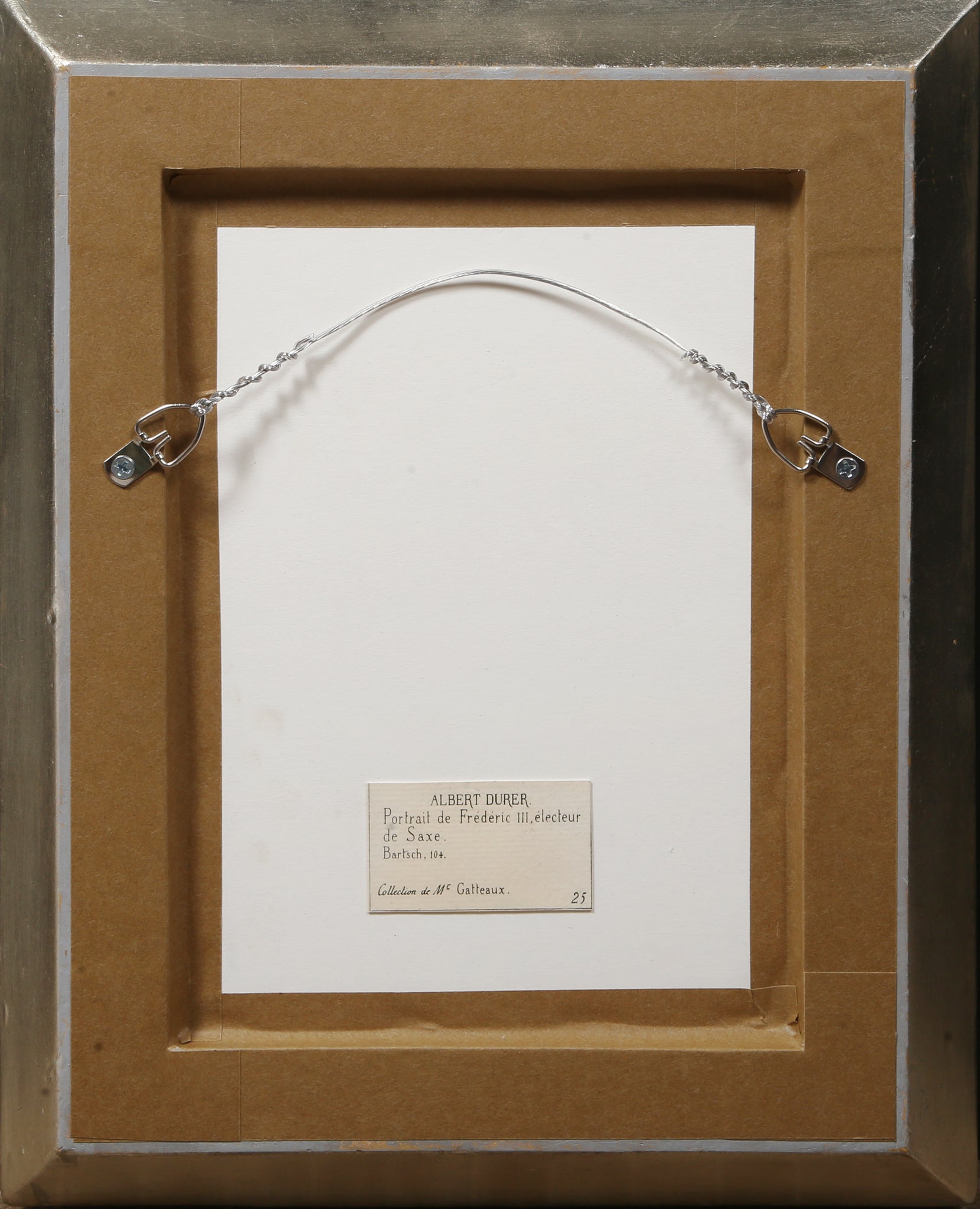 An etching after Albrecht Durer printed by Amand Durand. French Engraver and painter Charles Amand Durand, (1831-1905) is recognized and praised for accomplishing the difficult task of renewing original copper plate designs made by van Dyck, van Leyden, Rembrandt, Durer, Beham, and other various Old Masters from the 15th, 16th, and 17th centuries. The task started when the main curator of the Louvre gave Amand Durand the important mission of restoring the worn down and fragile engravings made by Rembrandt.