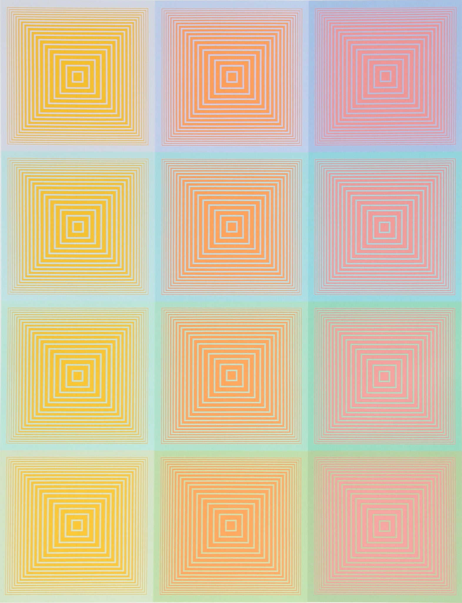 Richard Anuszkiewicz (American, 1930 - ) created the "Inward Eye" portfolio after a conversation with a friend who said that Anuszkiewcz’s works reminded him of William Blake’s work. There are many parallels between the artwork of Richard Anuszkiewicz and the poems (and artworks) of William Blake. Blake’s artworks especially sought to eliminate the boundary between man and nature.
