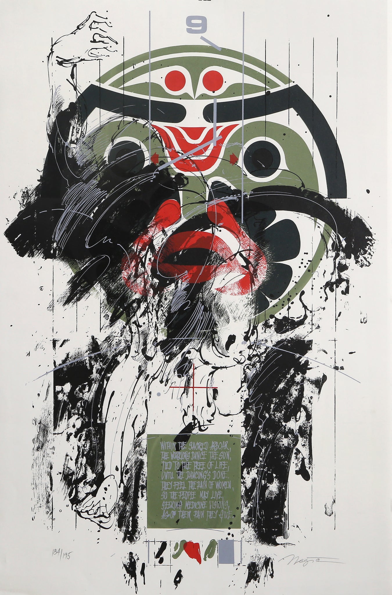 Explore the enigmatic power of Miroslav Nesic's "Mask," a thought-provoking hand-signed screenprint that merges Abstract and Conceptual Art movements with tribal imagery and textual elements. This compelling work on paper challenges viewers to contemplate identity, culture, and meaning through Nesic's sophisticated layering of abstract forms, tribal mask motifs, and integrated text that creates a dialogue between visual and written language. Rooted in Conceptual Art's emphasis on ideas and Abstract Art's formal experimentation, the piece invites multiple interpretations while celebrating the universal symbolism of masks across cultures. A powerful addition for collectors of contemporary abstract and conceptual work.