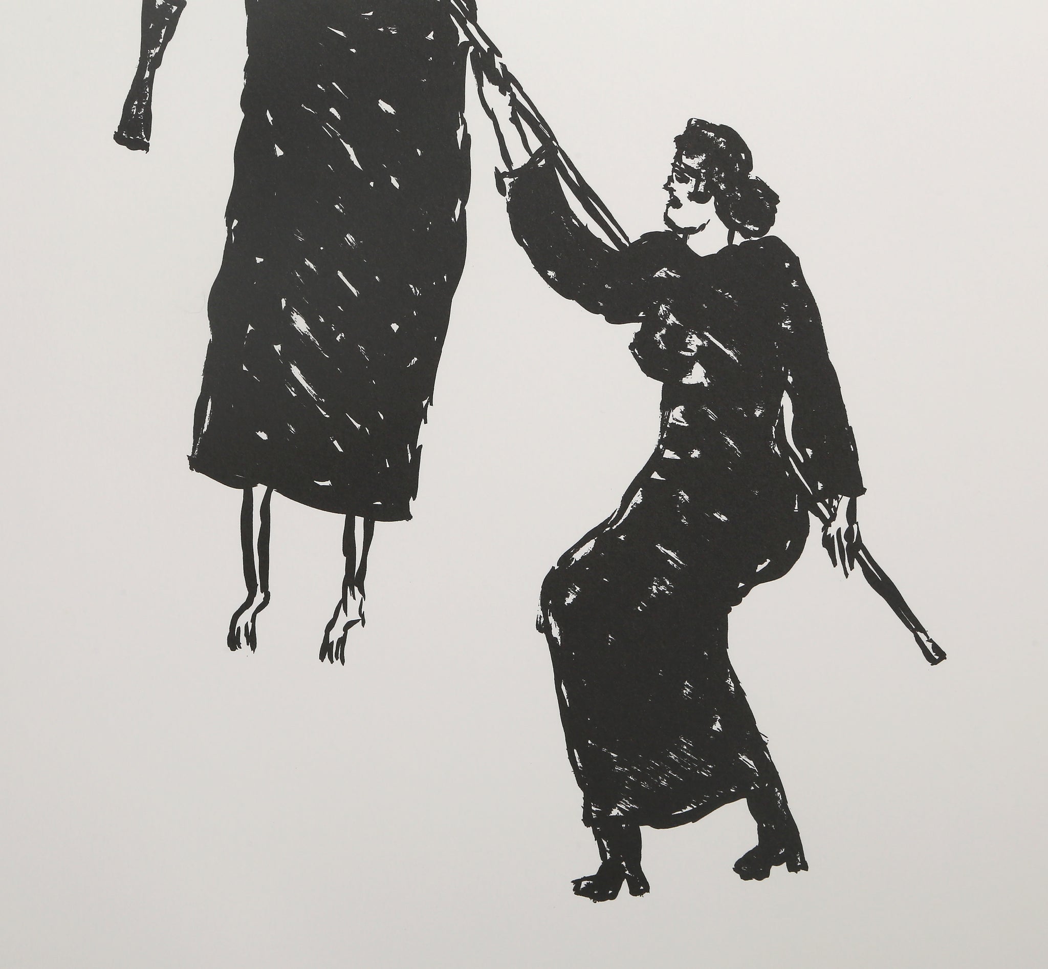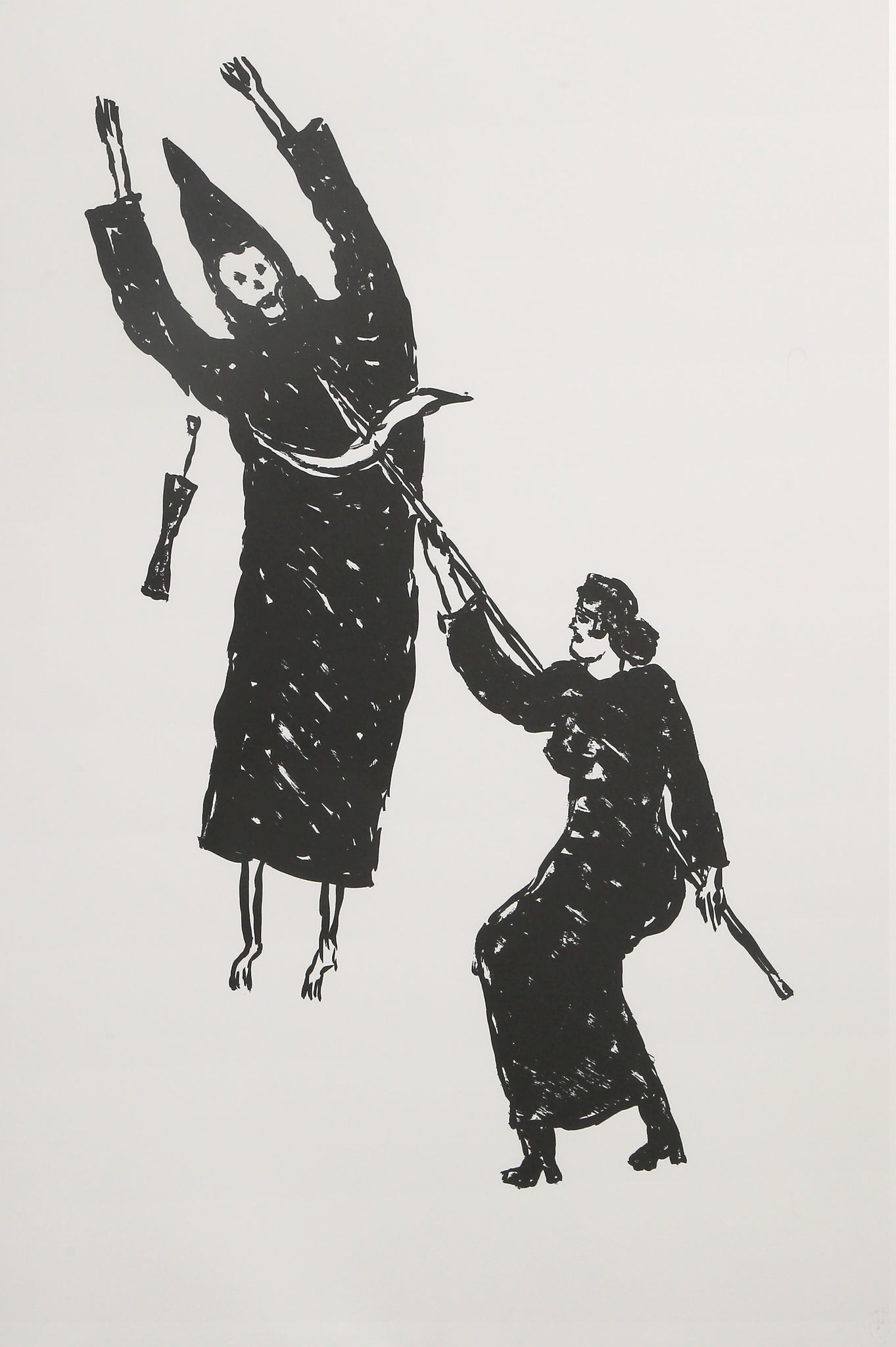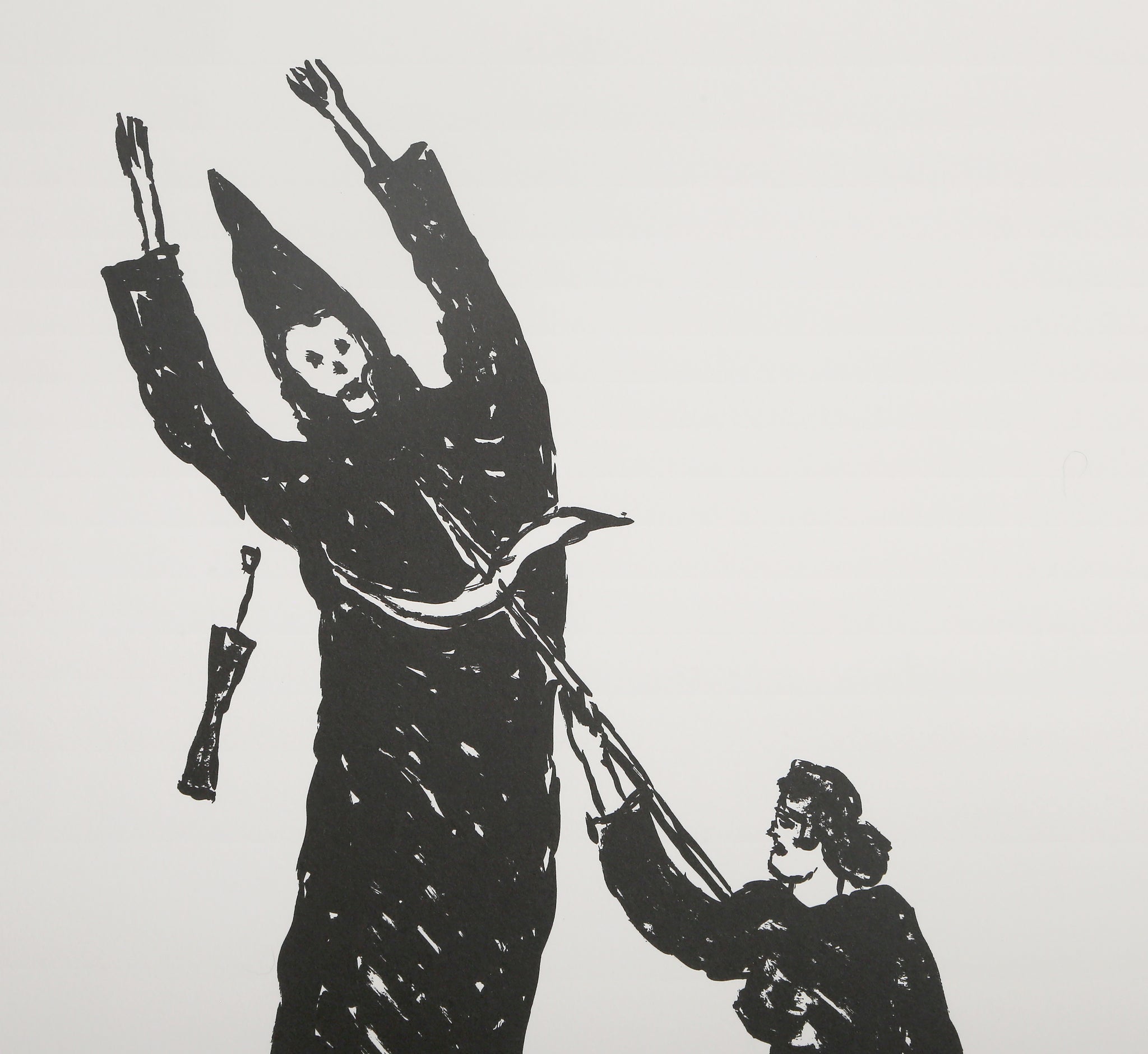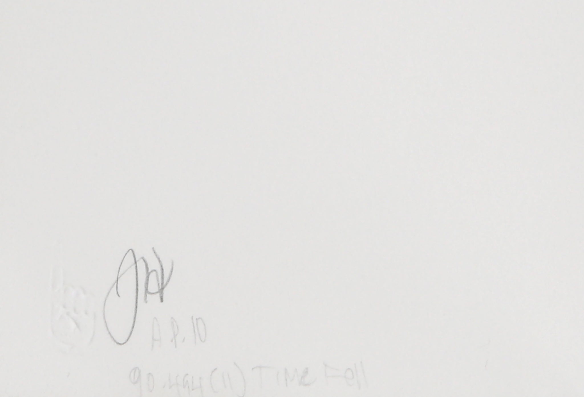 Time Fell presents a haunting architectural narrative where books and figurative elements merge with Grimm fairy tale imagery in a composition that speaks to the passage of time and the weight of stories by renowned architect-artist John Hejduk. This hand-signed lithograph exemplifies the depth of fantasy art and surrealism movements, creating a visual meditation on mortality, knowledge, and the eternal dance between life and death represented by the reaper figure. The architectural elements ground the fantastical imagery in a sense of place and permanence, while the books suggest the enduring power of stories to transcend time itself, reflecting Hejduk's unique ability to merge architectural precision with surreal storytelling. Perfect for collectors who appreciate the intersection of architectural theory, literary symbolism, and the artist's profound exploration of existential themes through visual narrative.