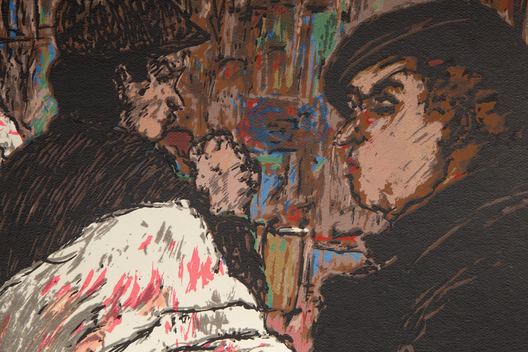 Artist: David Azuz, Israeli/French (1942 - 2014) - Men in Hats. Year: circa 1980, Medium: Lithograph, numbered in pencil, Edition: 217/300, Image Size: 19.75 x 25.5 inches, Size: 26 x 32.5 in. (66.04 x 82.55 cm)