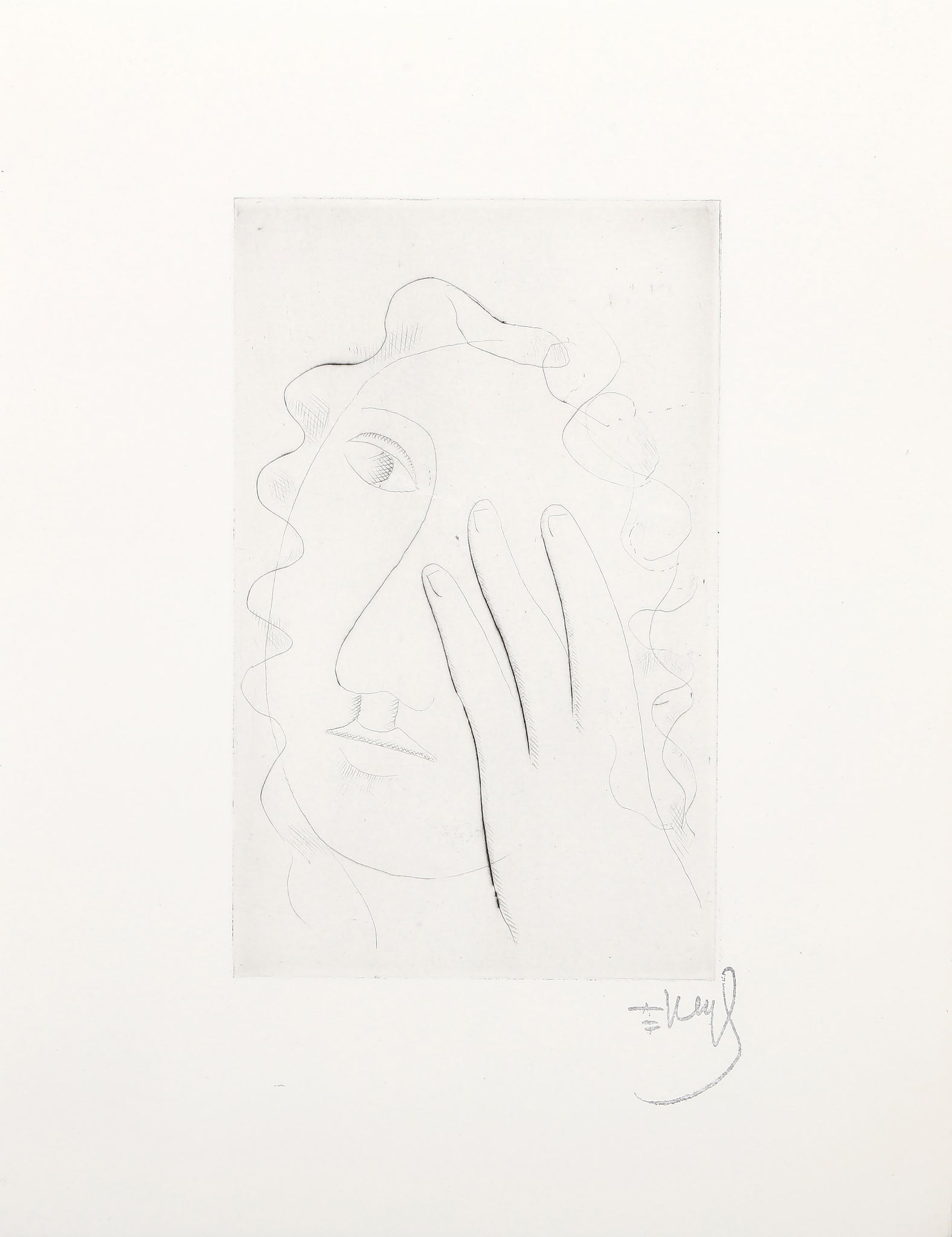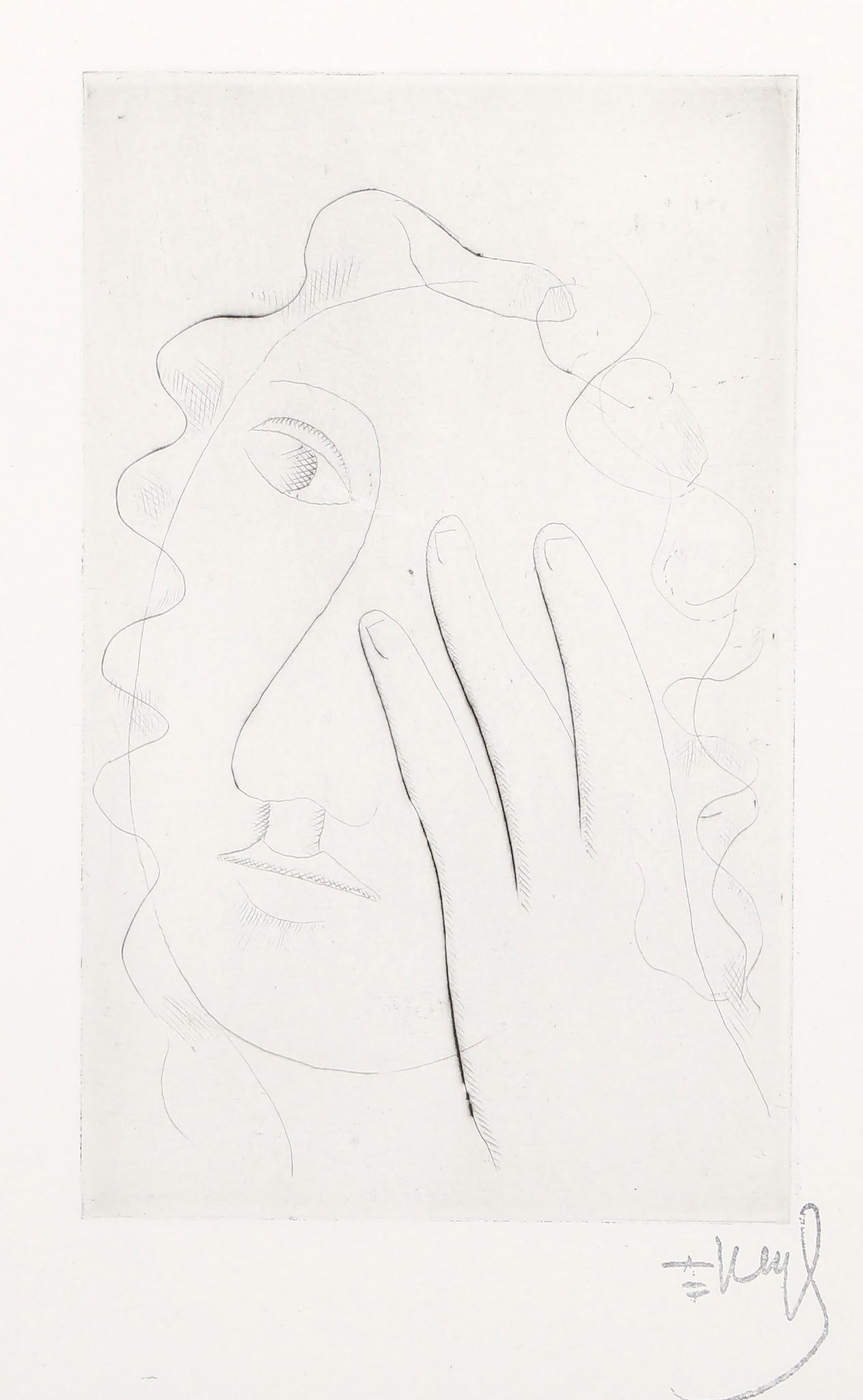 Fernand Leger, French (1881 - 1955) - Tete De Femme. Year: 1952, Medium: Drypoint Etching, stamp signed and numbered in pencil, Edition: 100, Image Size: 7.75 x 4.75 inches, Size: 12.5 x 9.25 in. (31.75 x 23.5 cm), Printer: Atelier Lacouriere et Frelaut, Paris, Publisher: Blue Moon Press, New York, Reference: Saphire 126, Description: From the collection of the late Larry Saphire.
