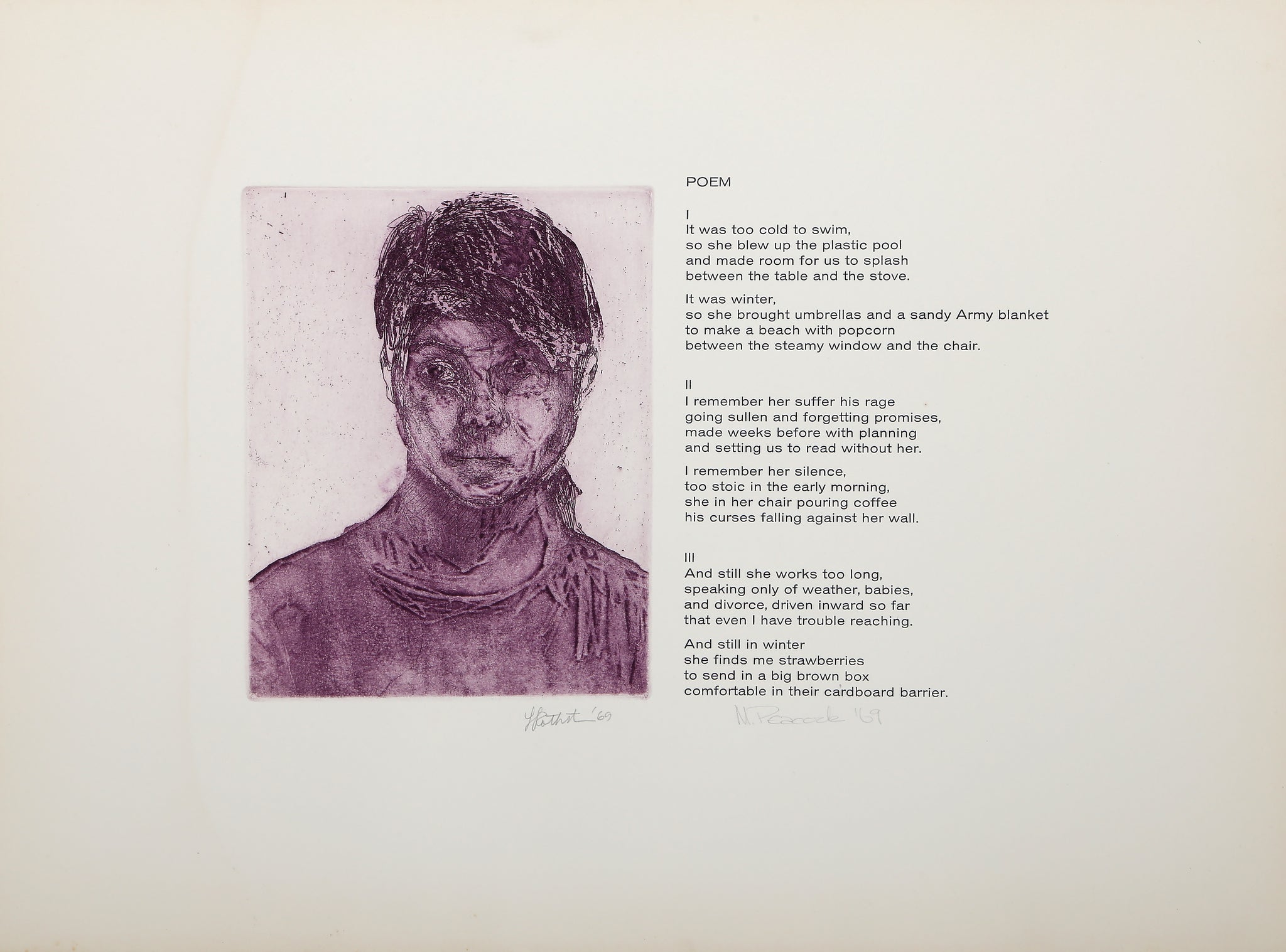 Lauren Rothstein, American - Day Portrait VII. Portfolio: Day Portraits, Year: 1968, Medium: Etching on Italia paper, signed, numbered and dated in pencil, Edition: 14, Image Size: 7.5 x 6 inches, Size: 14 x 19 in. (35.56 x 48.26 cm)