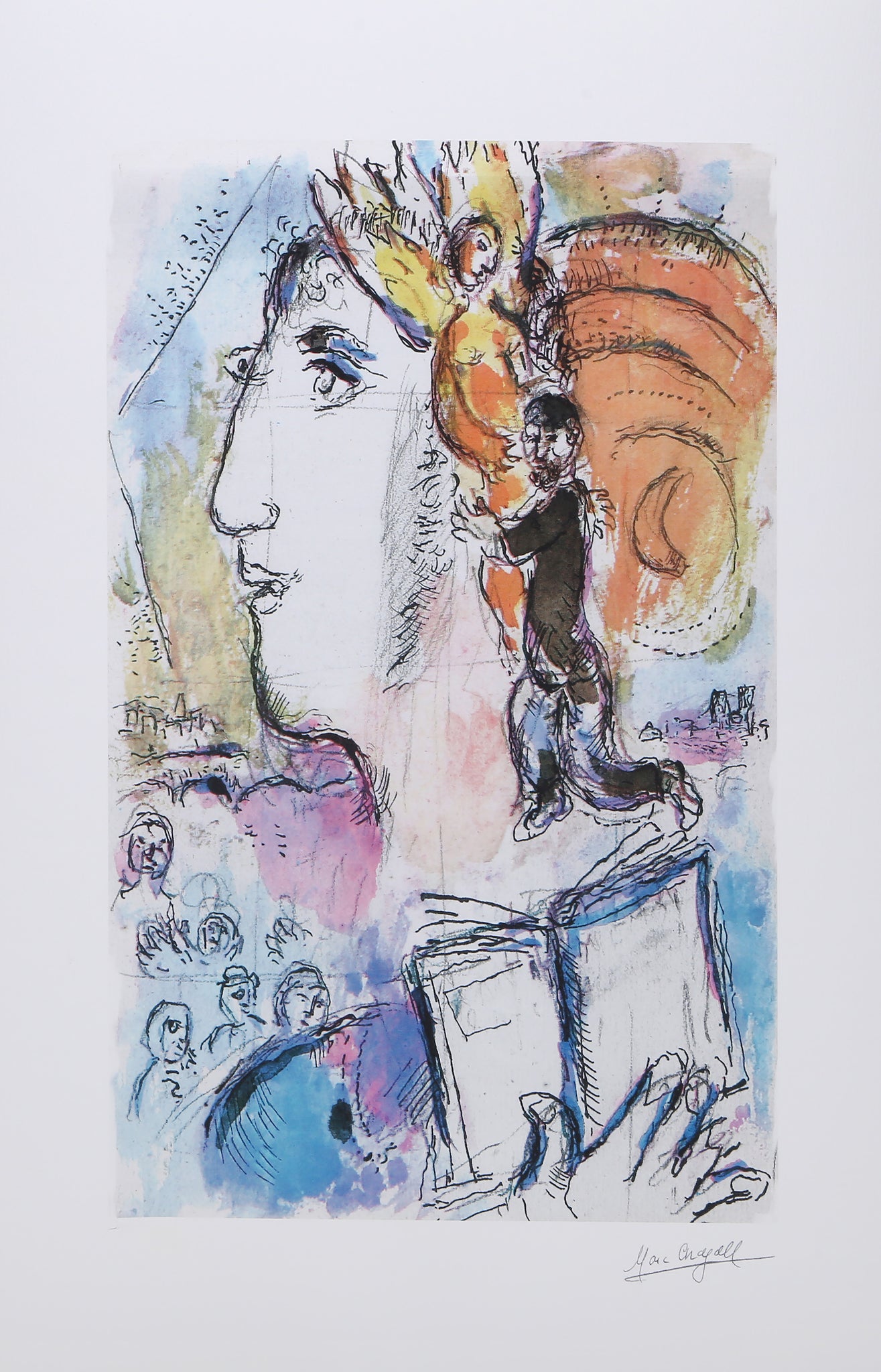 Marc Chagall, After, Russian (1887 - 1985) - Shabbat. Medium: Giclee, fascimille signed and numbered in pencil, Edition: 375, Image Size: 18.5 x 11.75 inches, Size: 24 x 16 in. (60.96 x 40.64 cm)
