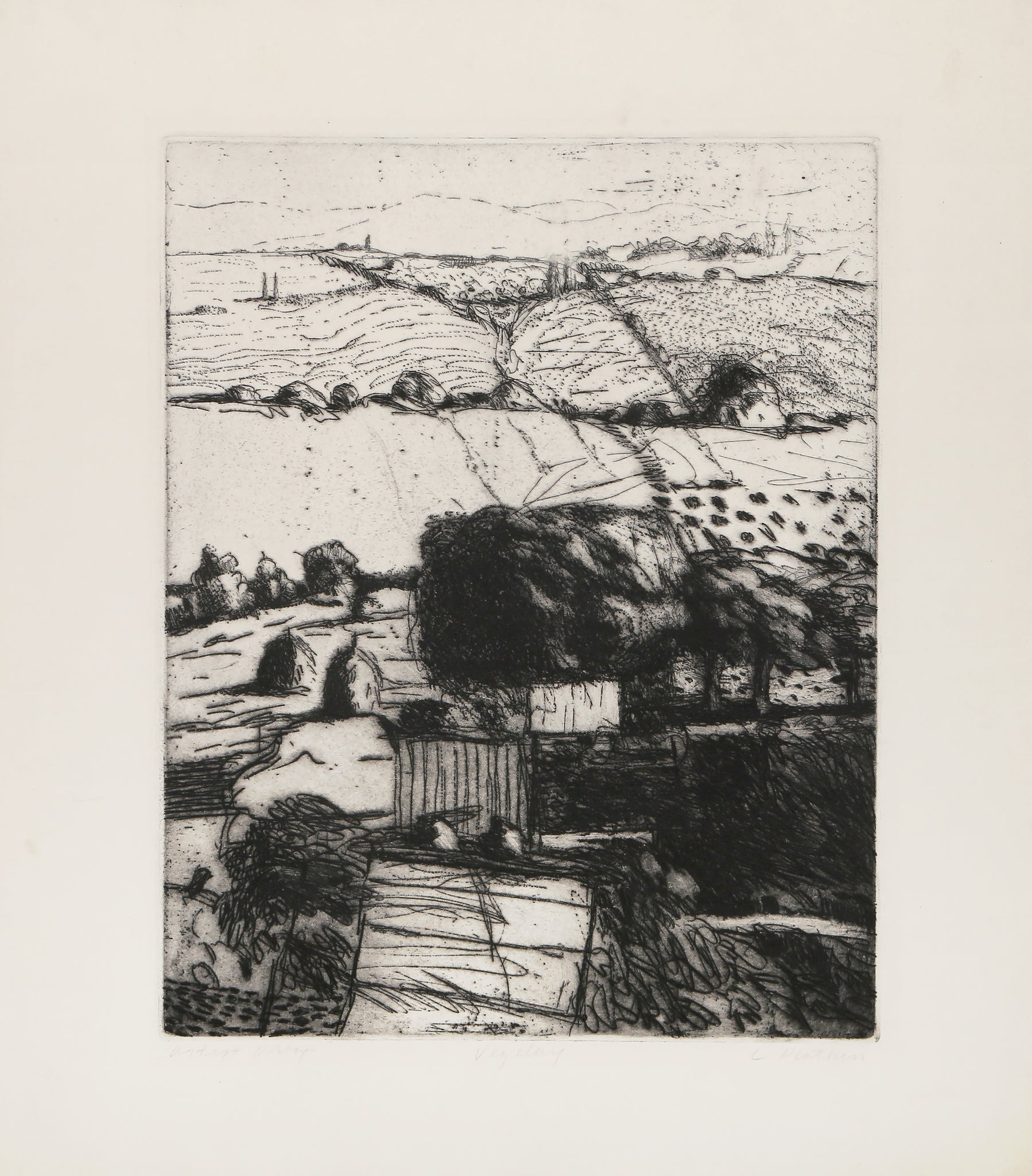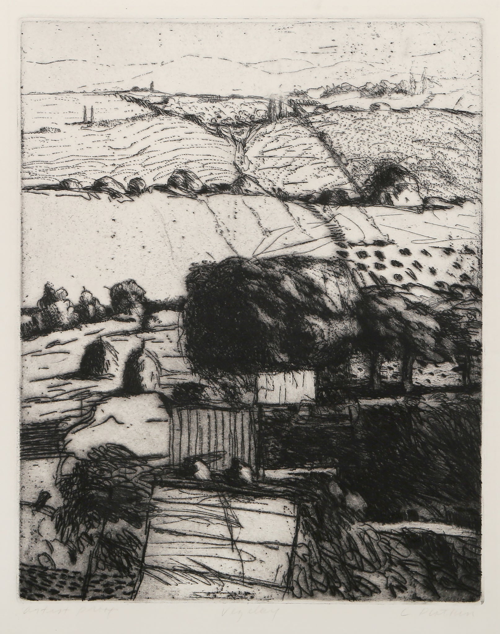 Linda Plotkin, American (1938 - ) - Vezelay. Year: 1966, Medium: Etching, signed, titled and numbered in pencil, Edition: AP, Image Size: 15 x 11.75 inches, Size: 20 x 17 in. (50.8 x 43.18 cm)
