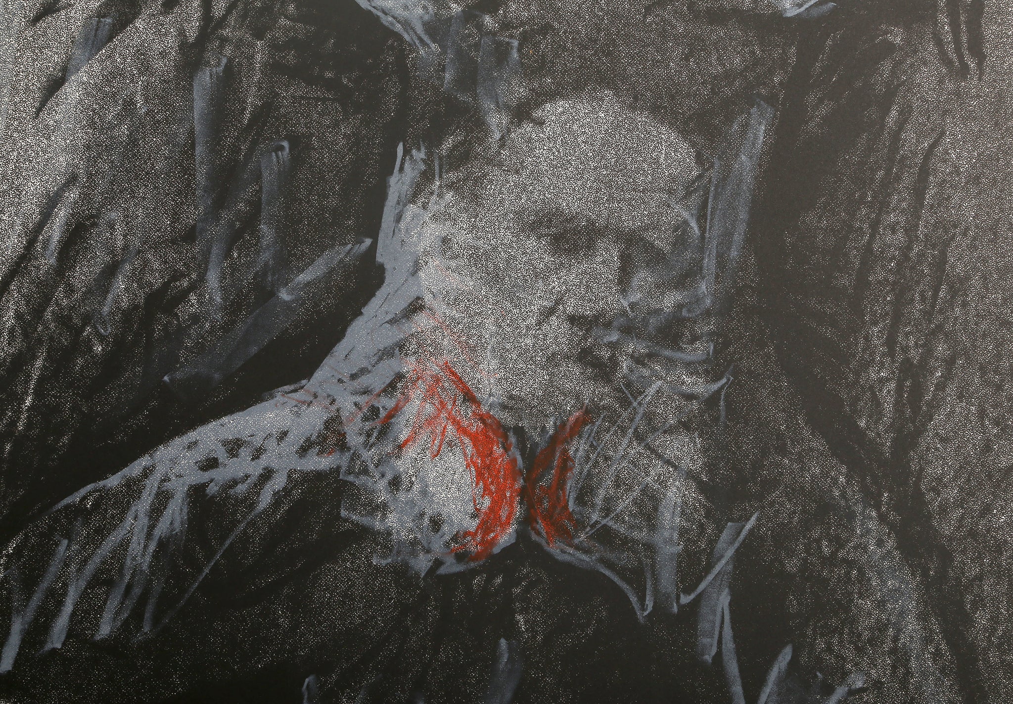 Acquire this evocative hand-colored conceptual art monoprint featuring a portrait with layered overlay effects and intricate drawing elements. This unique work showcases the artist's mastery of combining traditional drawing techniques with hand-coloring to create depth and visual intrigue. The dark, atmospheric composition with its overlay technique creates a haunting portrait that exemplifies conceptual art's exploration of identity and perception. Perfect for collectors seeking one-of-a-kind conceptual portraits that blend traditional and contemporary artistic approaches.