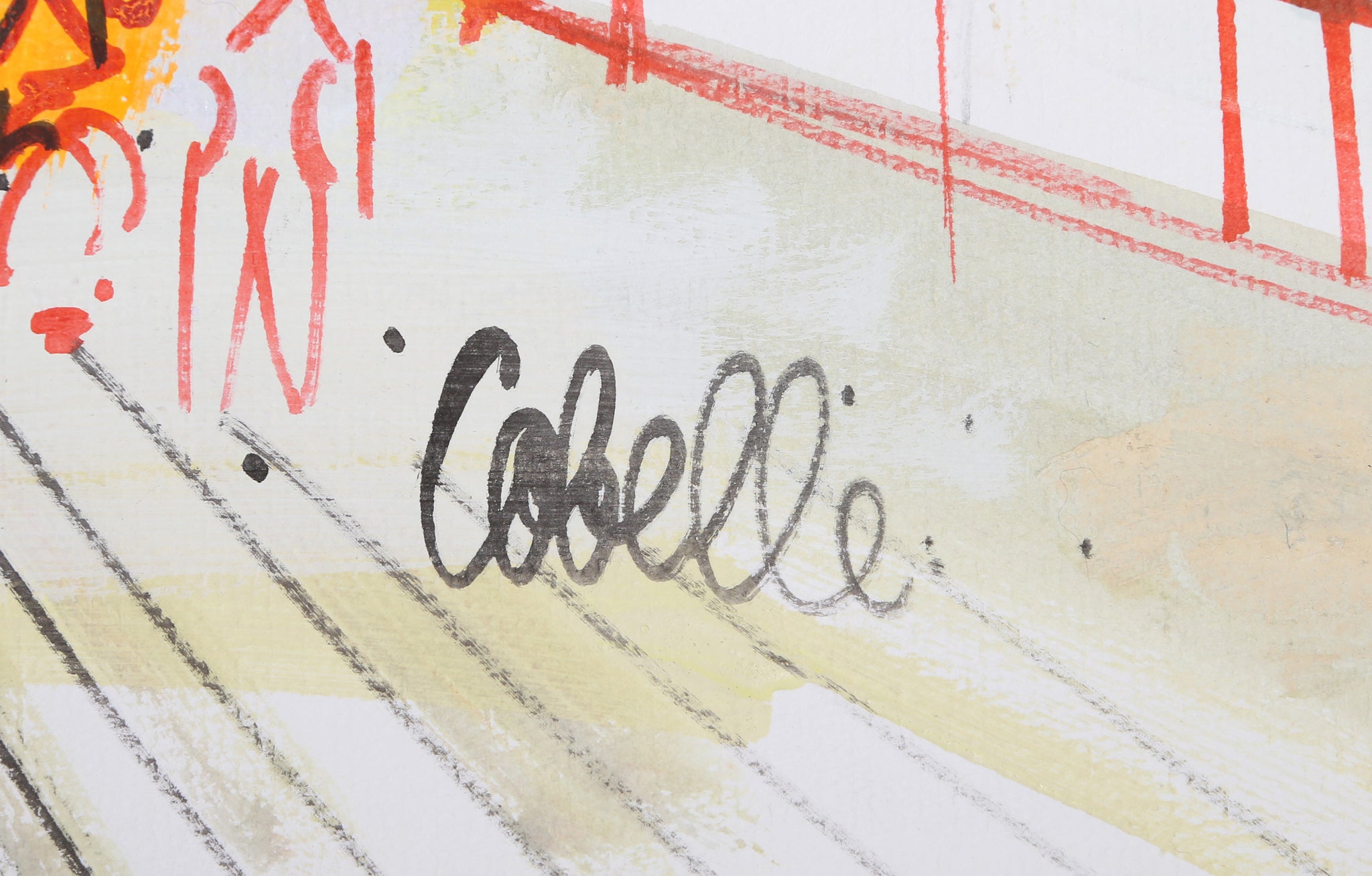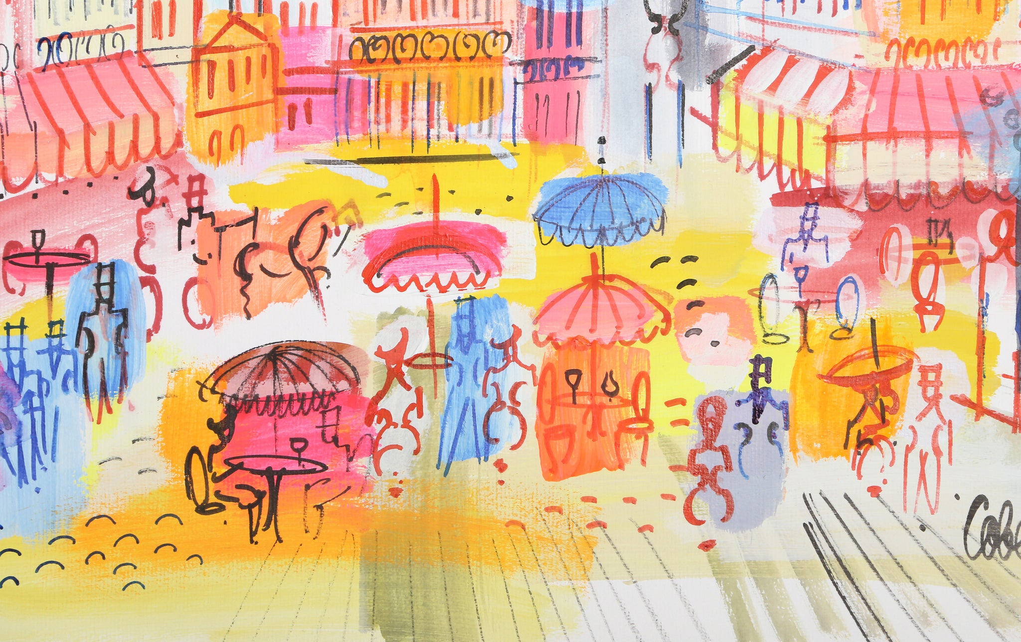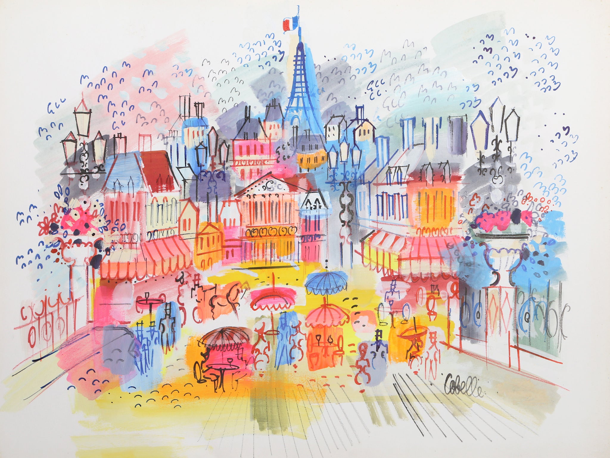 Charles Cobelle, French (1902 - 1994) - Blue Umbrella. Year: circa 1956, Medium: Watercolor and acrylic on paper, signed, Size: 24.5 x 32.5 in. (62.23 x 82.55 cm)