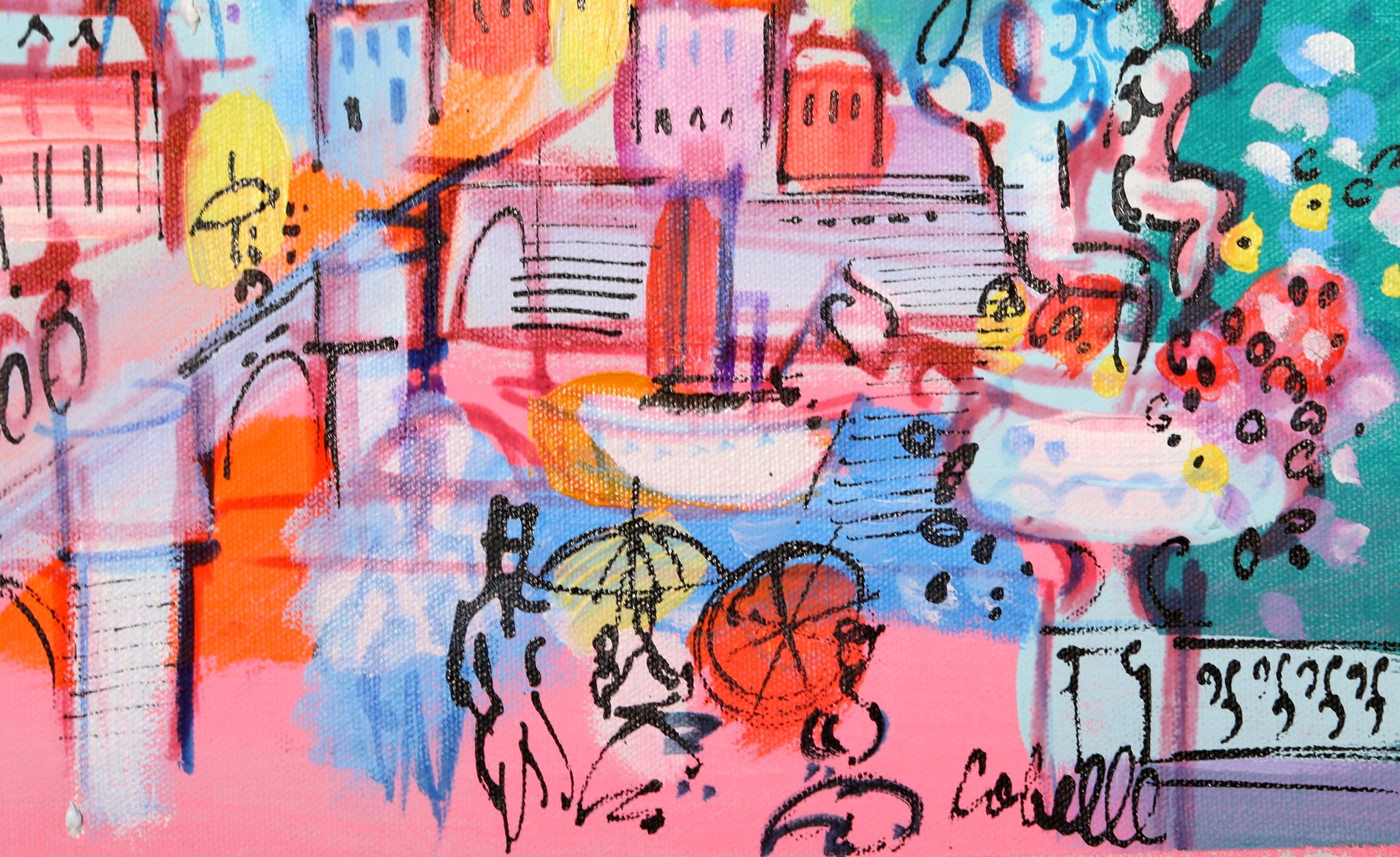 Charles Cobelle, French (1902 - 1994) - Eiffel Tower Cityscape . Year: circa 1960, Medium: Acrylic on canvas, signed lower right, Size: 12 x 16 in. (30.48 x 40.64 cm), Description: A bright and bustling Paris cityscape by French artist Charles Cobelle