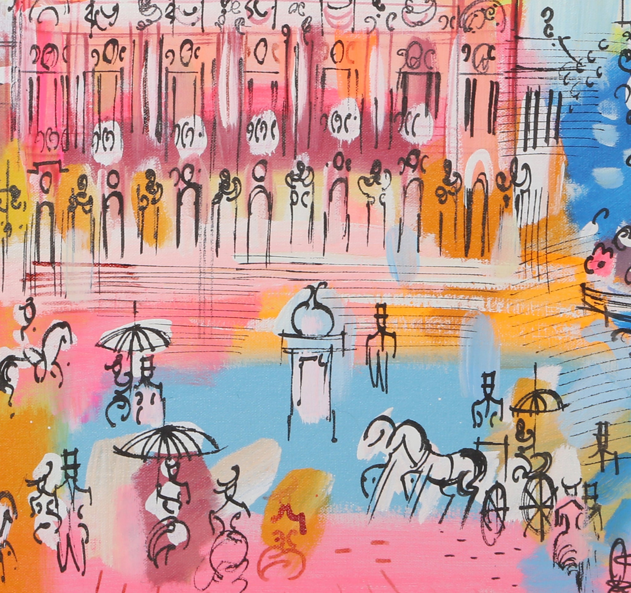 Charles Cobelle, French (1902 - 1994) - Palais Garnier Plaza. Year: circa 1961, Medium: Acrylic on Canvas, signed, Size: 24 x 30 in. (60.96 x 76.2 cm), Description: An Impressionist city scene by French artist Charles Cobelle. The boldly-colored painting is signed by the artist.