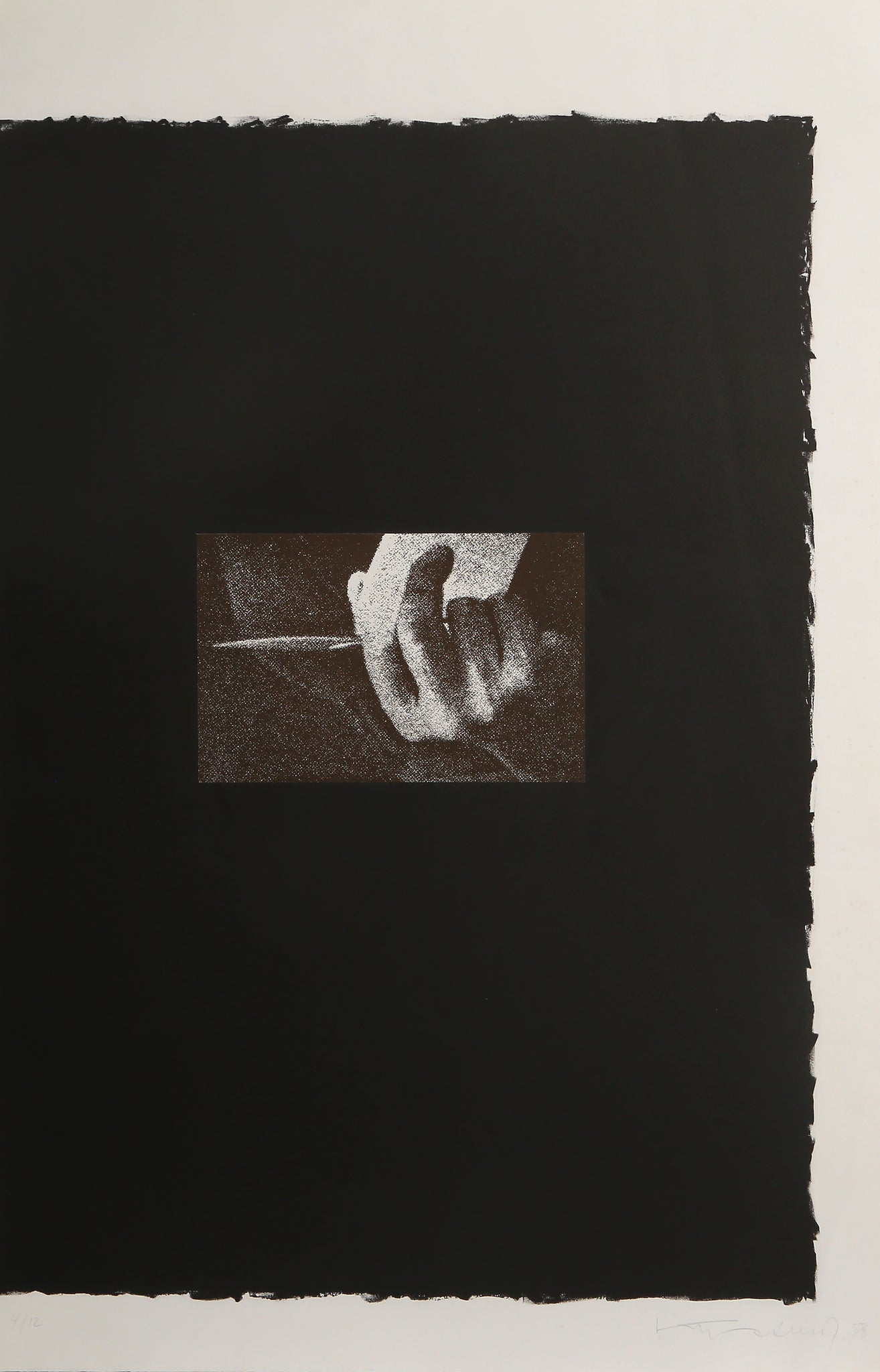 Add this compelling conceptual art screenprint to your collection, featuring dramatic photography with collage elements and striking hand imagery set against a dark background. This thought-provoking print exemplifies the conceptual art movement's focus on ideas and meaning over traditional aesthetics. The layered composition creates a powerful visual statement that invites contemplation. A must-have for collectors of conceptual art, figurative works, and those who appreciate photography-based prints that challenge conventional artistic boundaries.